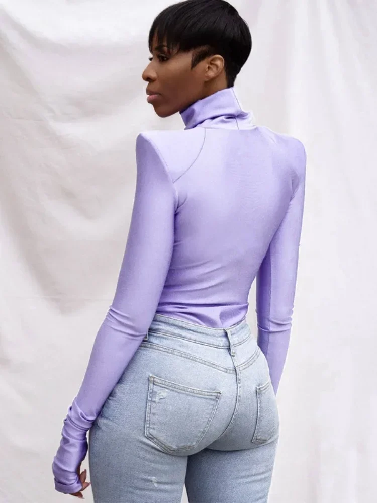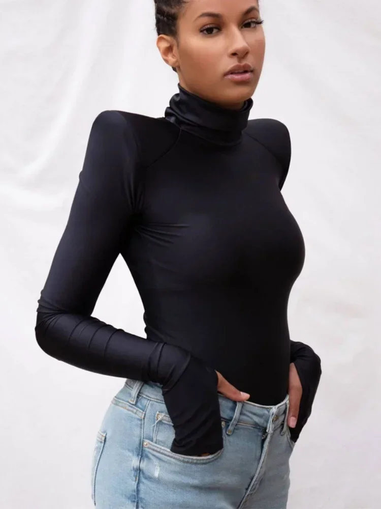 Body couleur unie col roulé Lingerie corps Sexy Feminino à manches longues Y2k hauts femmes une pièce Lenceria Femenina épaulière