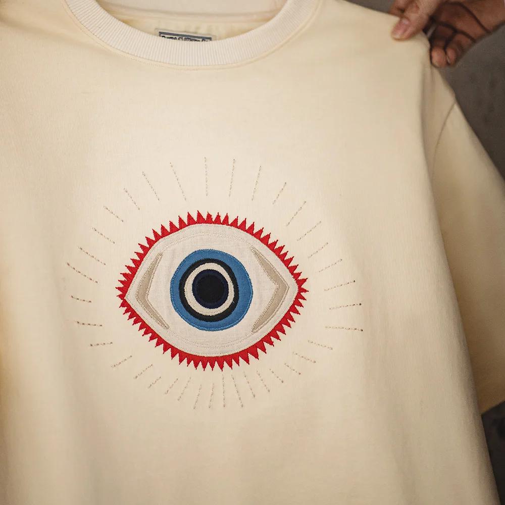 Maden-T-shirt Manches Courtes Homme Col Ras du Cou, Estival et Rétro, Brodé Œil Panoramique, Coton RapCotton, 300 g/m²