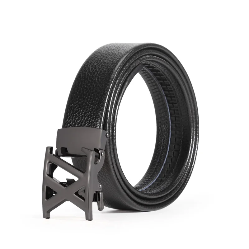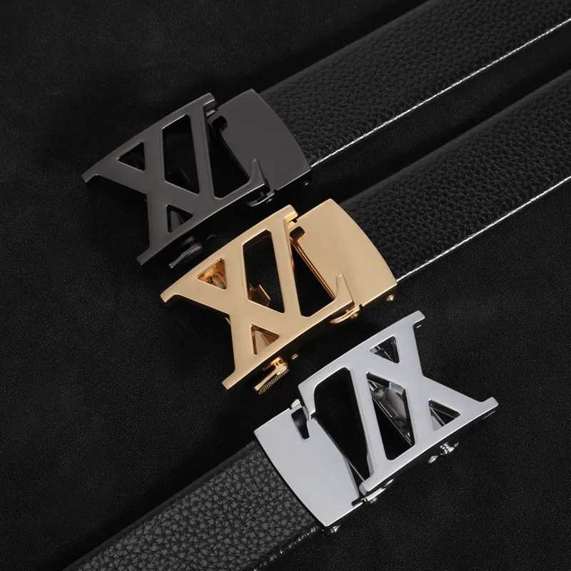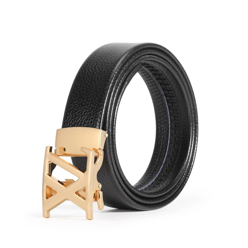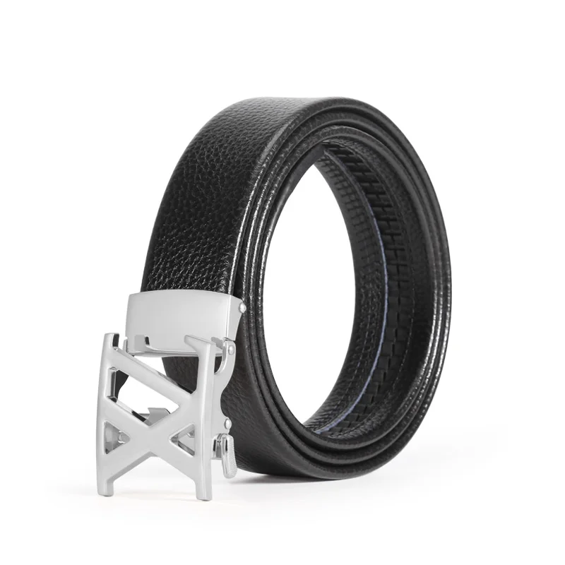 Men's multi-color light luxury business adjustable double X letter metal automatic buckle lychee pattern belt, a versatile belt