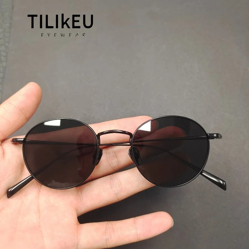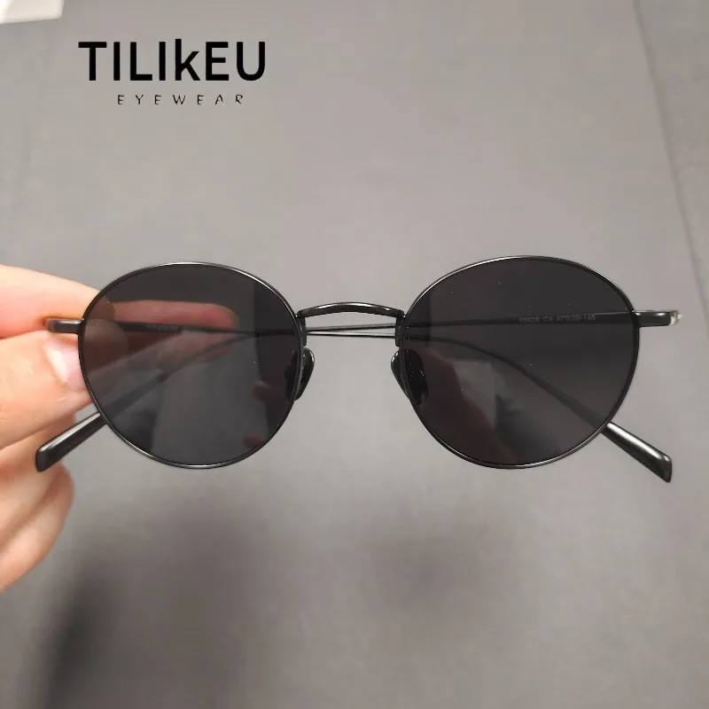 2026 Ultra-Light Pure Titanium Polarized Sunglasses Trend Men Women Round Gradient Shades UV400 Small Face Fishing Sun Glasses
