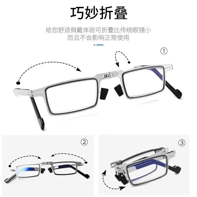 Anti-Blue Light Blocking Folding Reading Glasses Comfortable Full-Frame Metal Eyewear Men And Women Hd Ultra Light Portable