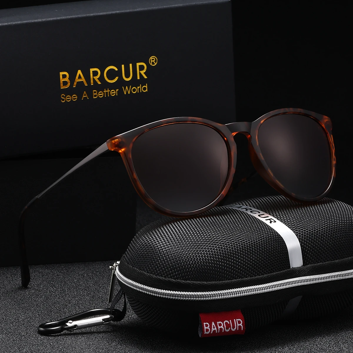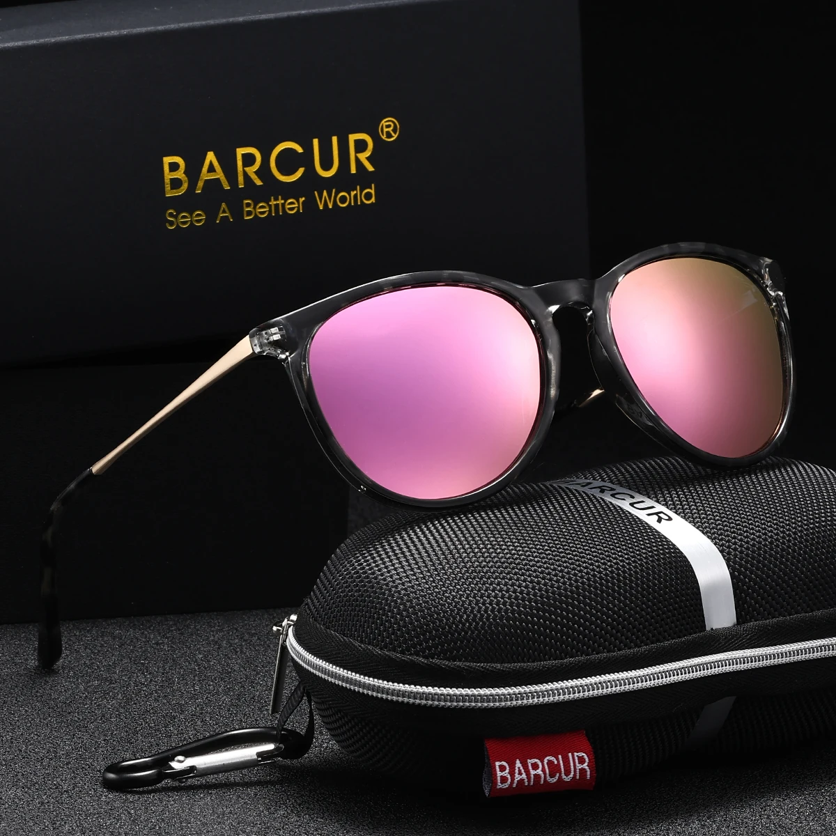 BARCUR Brand Design Fashionable Women Sunglasses Durable Plastic Titanium Frame UV400 Lens Retro Circular Polarized Sunglasses