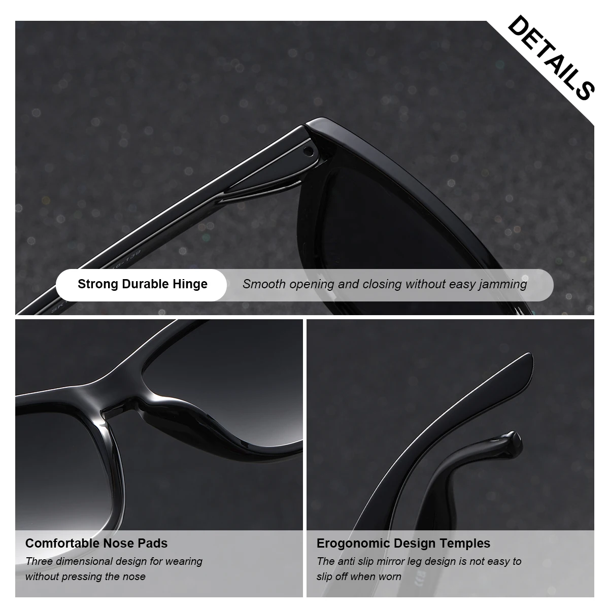 BARCUR Fashion Energetic Women Sunglasses Durable PC Transparent Frame Holiday UV400 Polarized Sunglasses White Gift Box Package