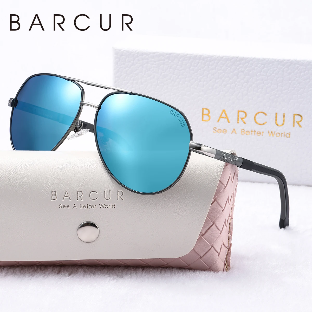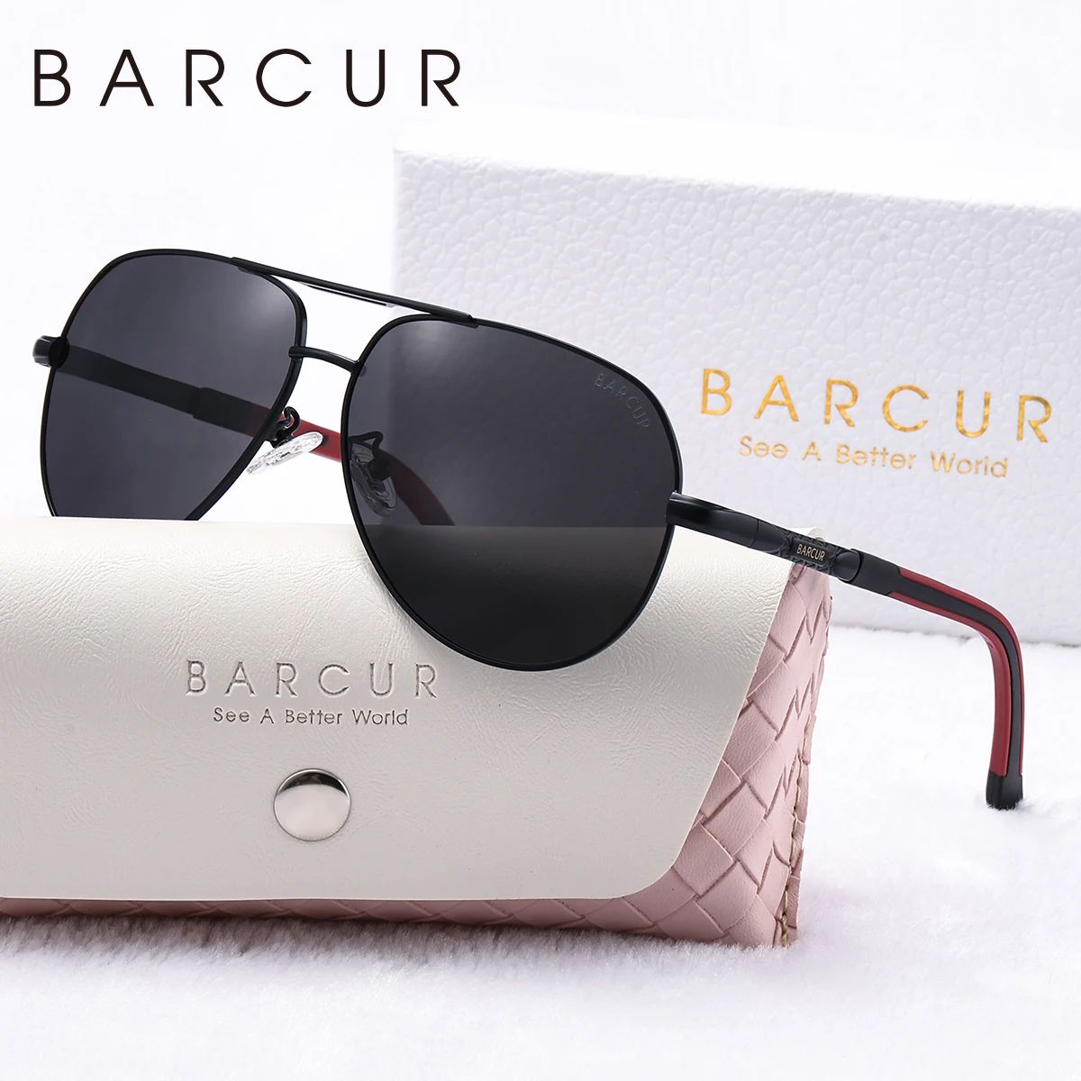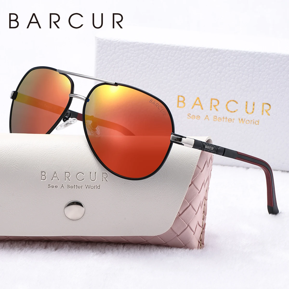 BARCUR Metal Frame Cool Women Polarized Sunglasses TAC Lens Anti Slip Silicone Mirror Legs Men Sunglasses Good Choice For Gift