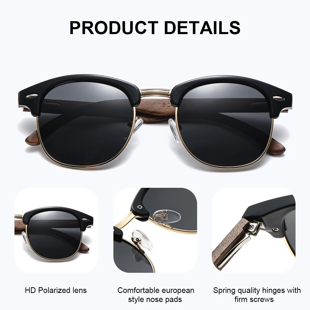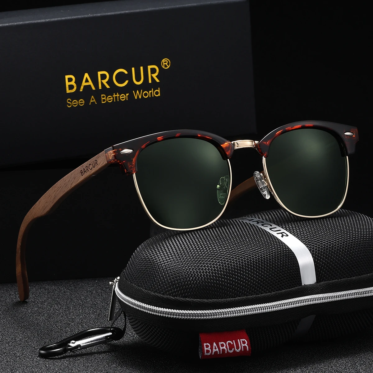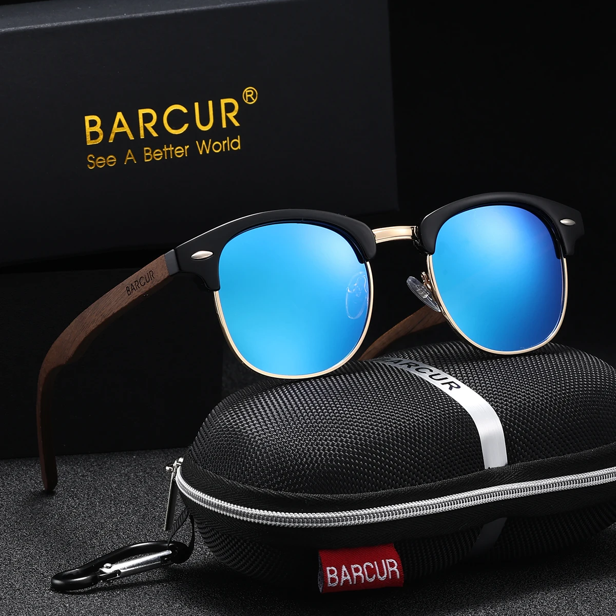 BARCUR Natural Wooden Men Polarized Sunglasses Walnut Women Sun Glasses Handmade Wood Eyewear lentes de sol mujer