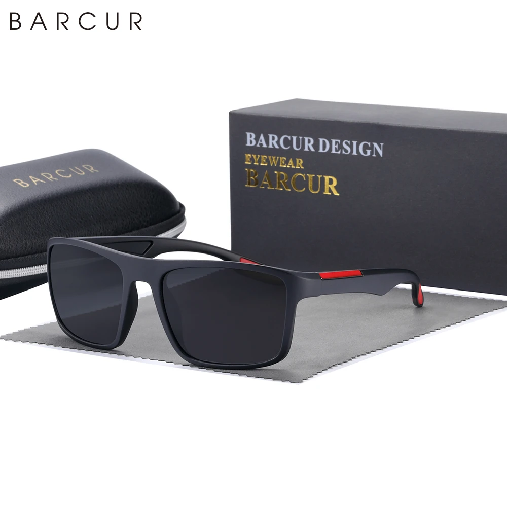BARCUR TR90 Mens Sunglasses Polarized Ultralight Sports Sun Glasses For Women Square Eyewear UV400 Protection Eyewear Oculos