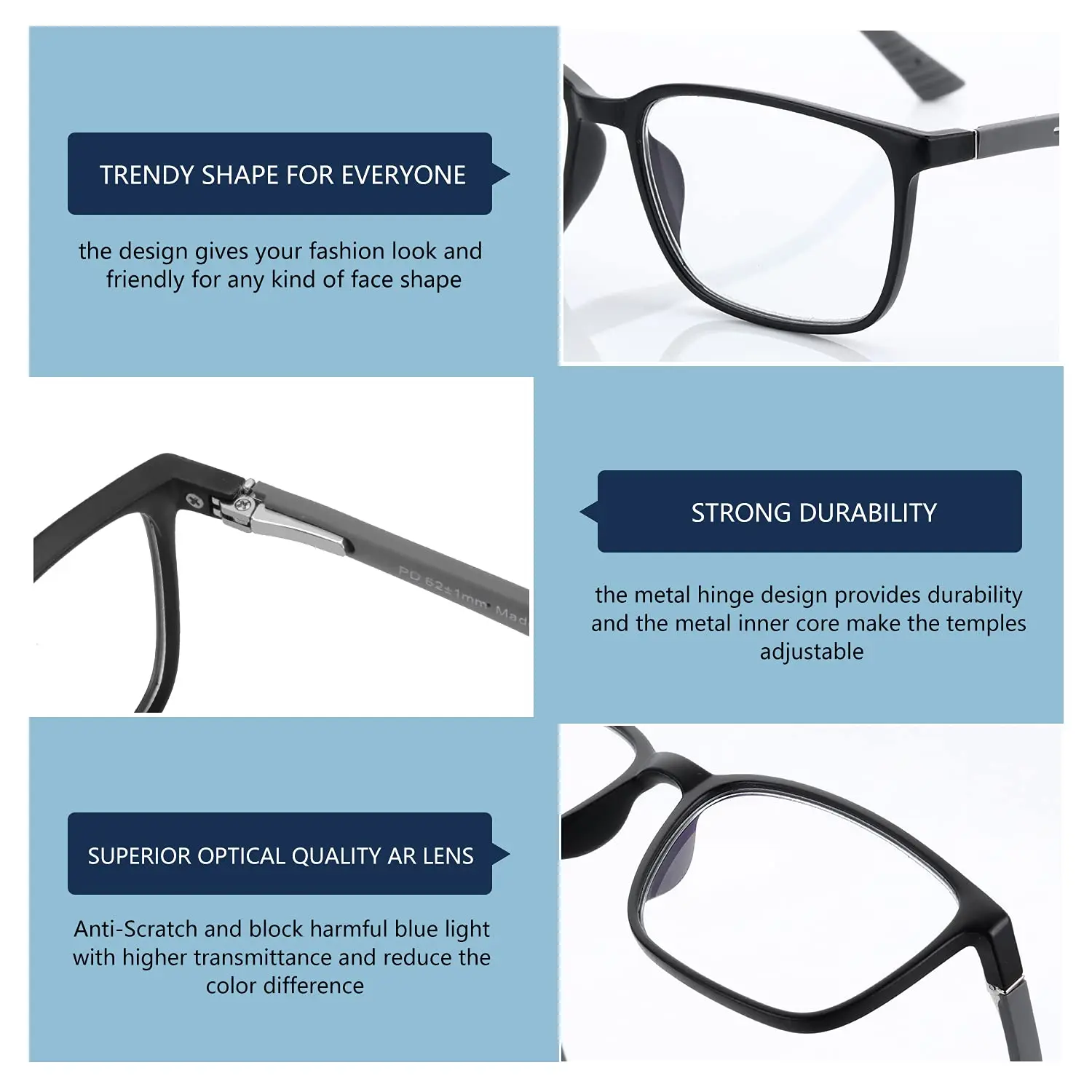 BLUEMOKY Anti Blue Light Reading Glasses Frame Men Business Square Computer Gaming Spectacles Retro Presbyopic Eyewear Diopters