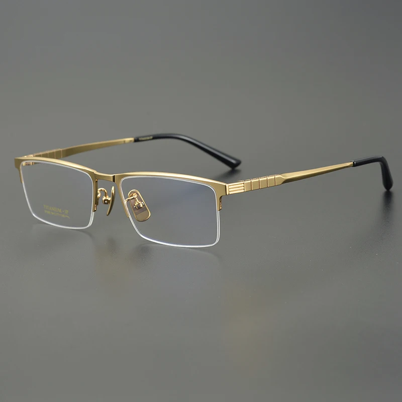 Business Pure Titanium Glasses Frame Men Fashion Square Half Rim Eyeglasses Unique Design Gold Color Eyewear Oculos 91088