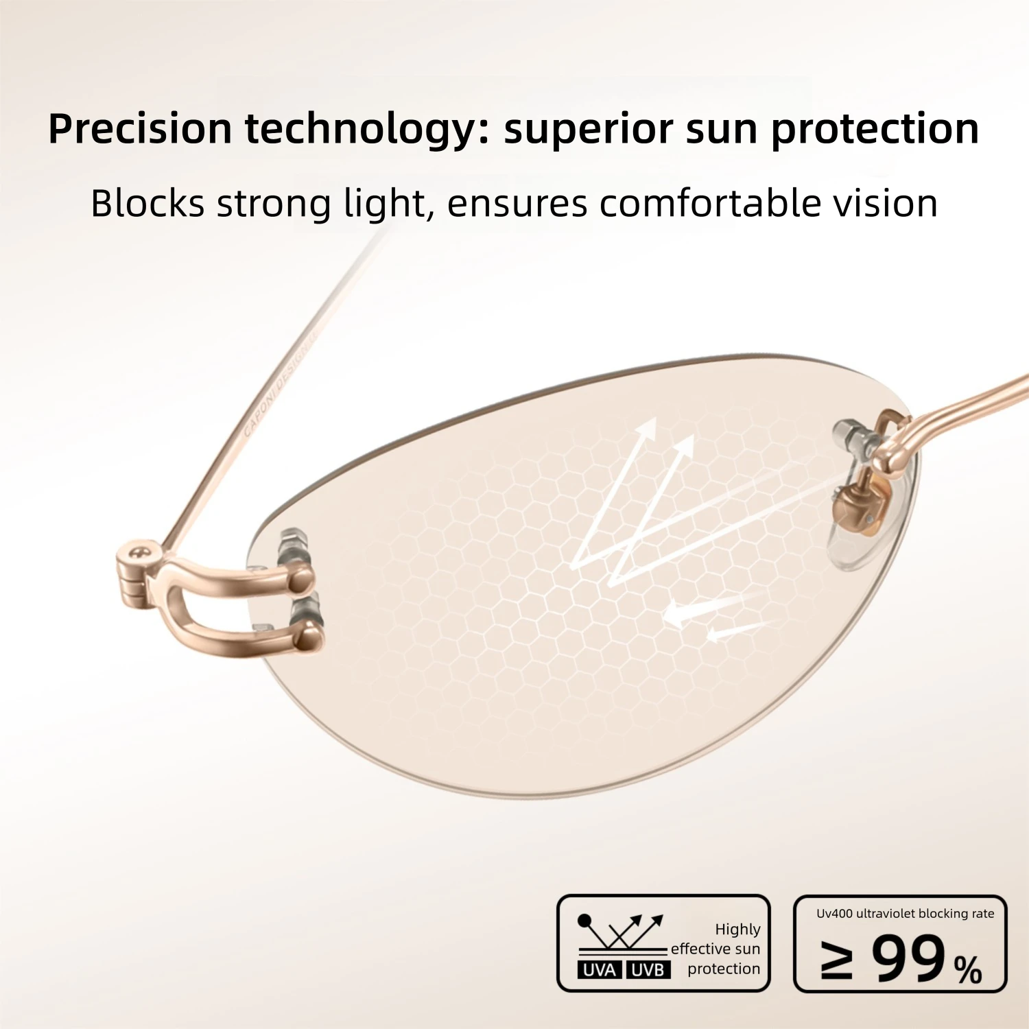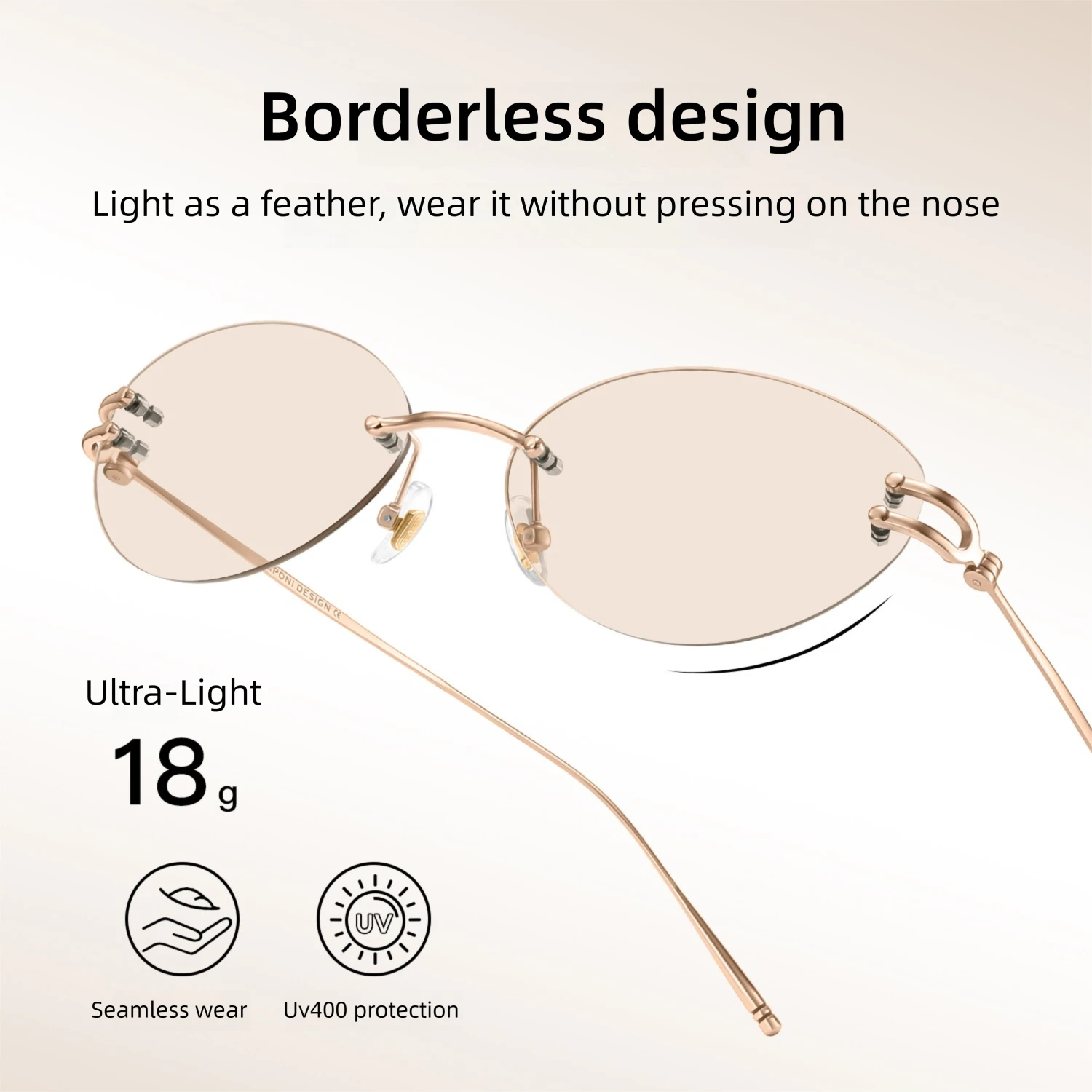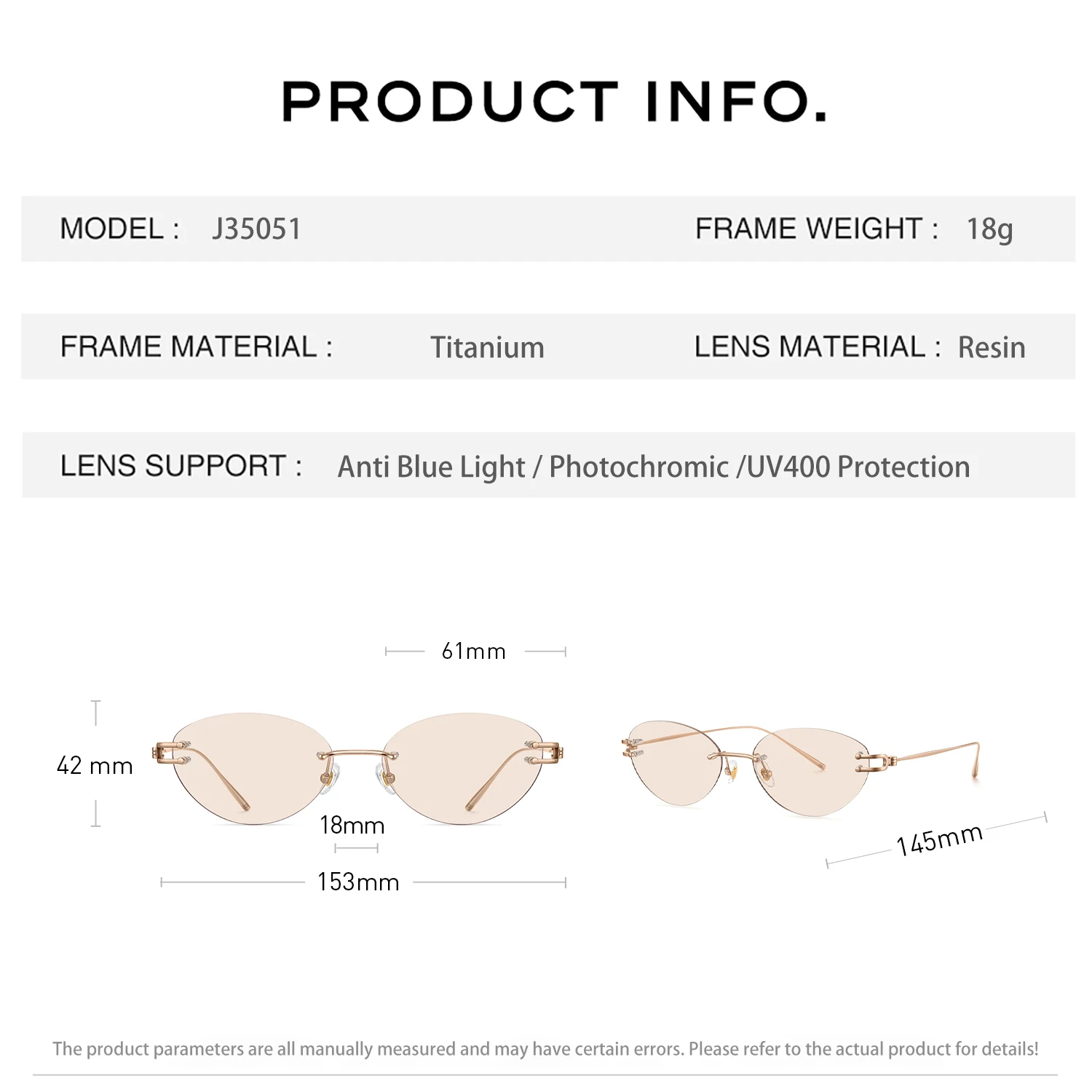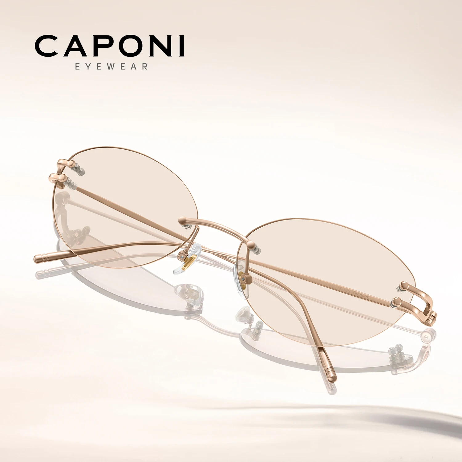 CAPONI Rimless Women Cat Eye Glasses Fashion Titanium Original Design Eye Frames Photochromic UV400 Anti Blue Ray Glasses J35051