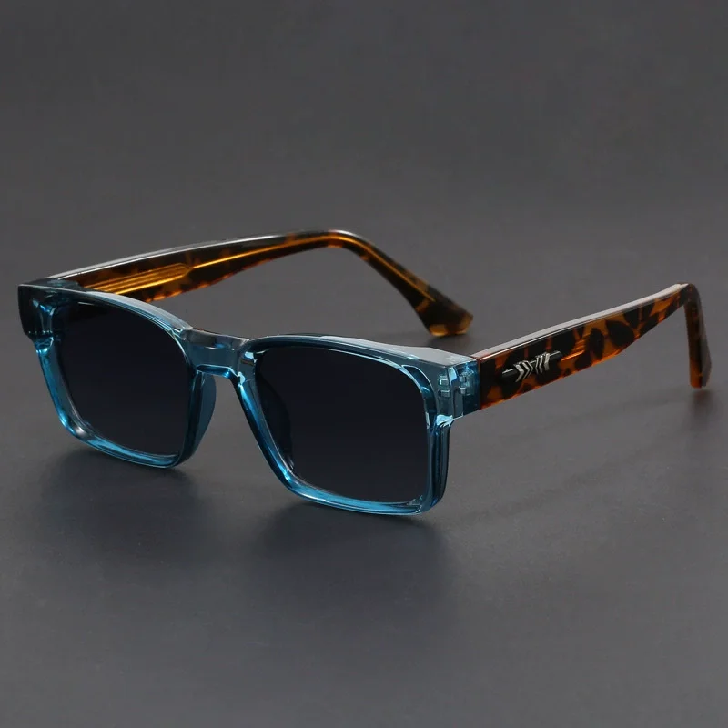 Fashionable Retro Square Black and Leopard Print Full Frame Anti-Uv Sunglasses for Men Japanese Simple Literary Style Shades