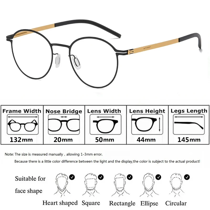 Germany Design Oval Round Prescription Glasses Frame Men Thin Steel Screwless Optic Eyeglass Women Ultralight Spectacles Eyewear
