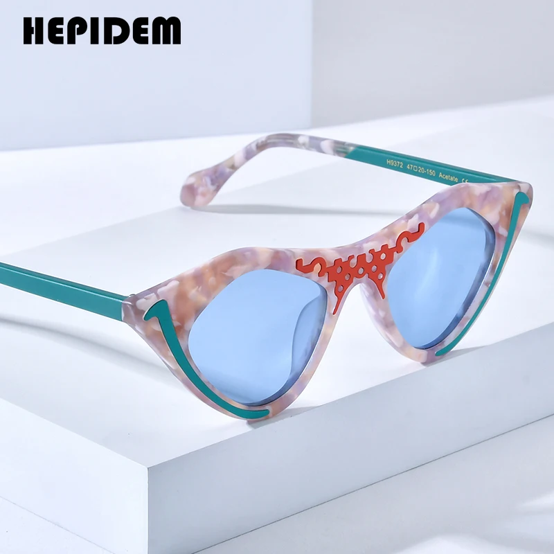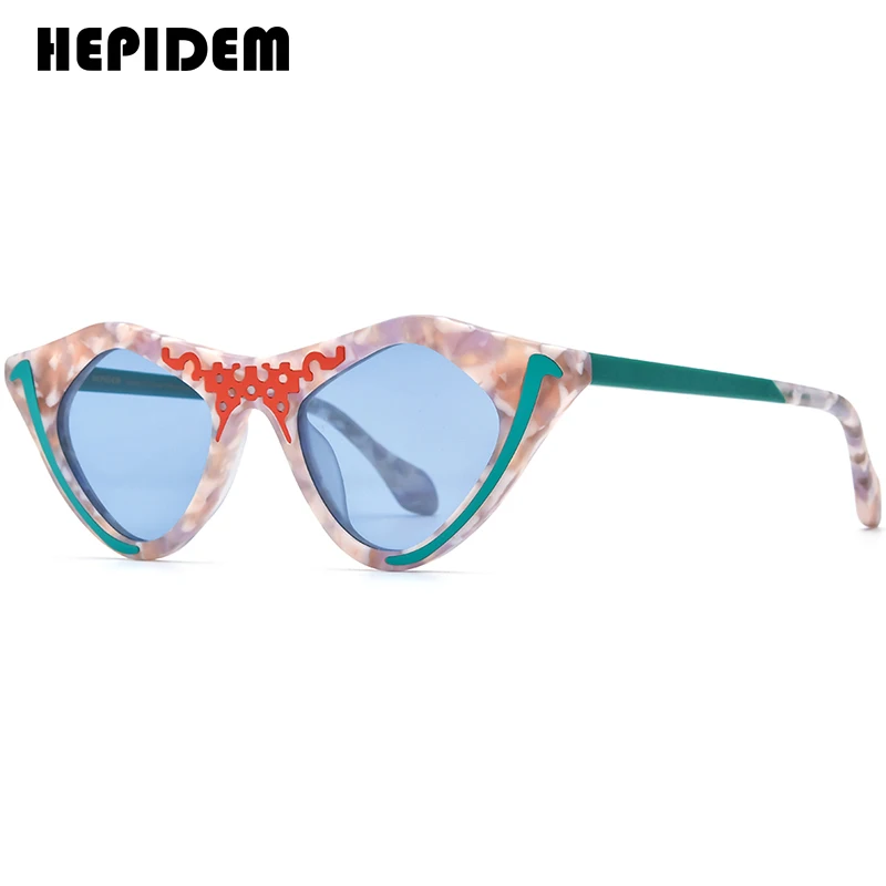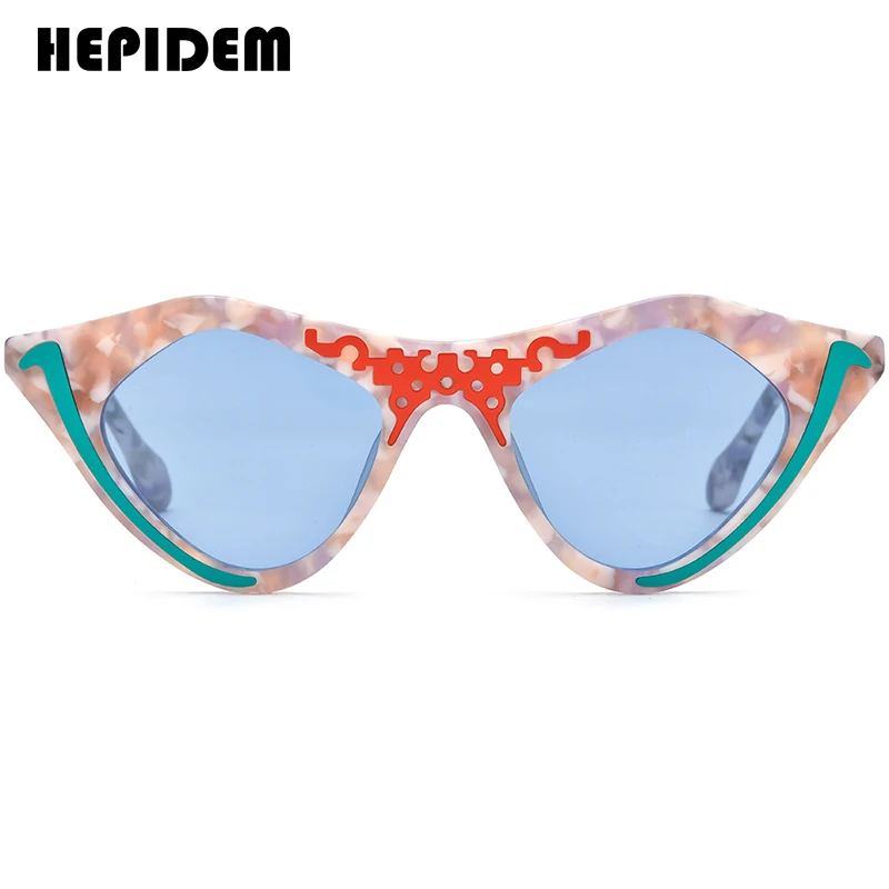 HEPIDEM Acetate Polarized Sunglasses Women Trendy Famous Brand Designer High-end Cateye Cat Eye Sun Glasses Pink gm y2k 9372