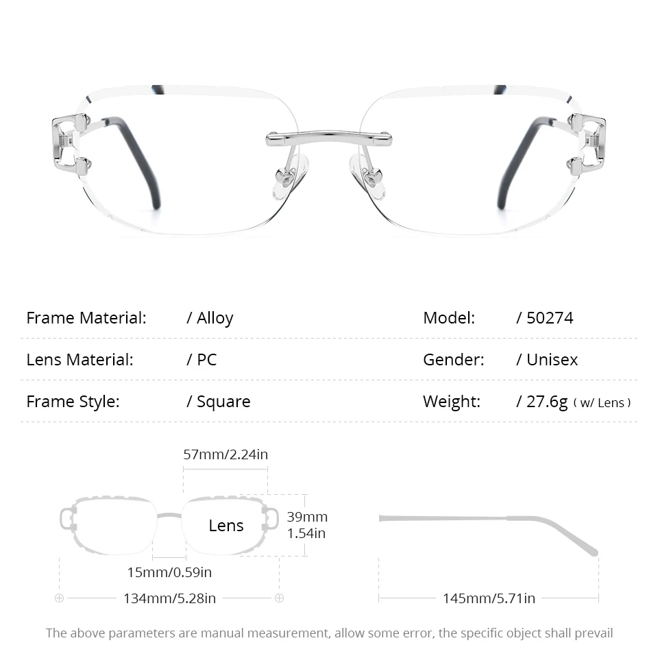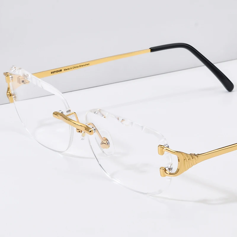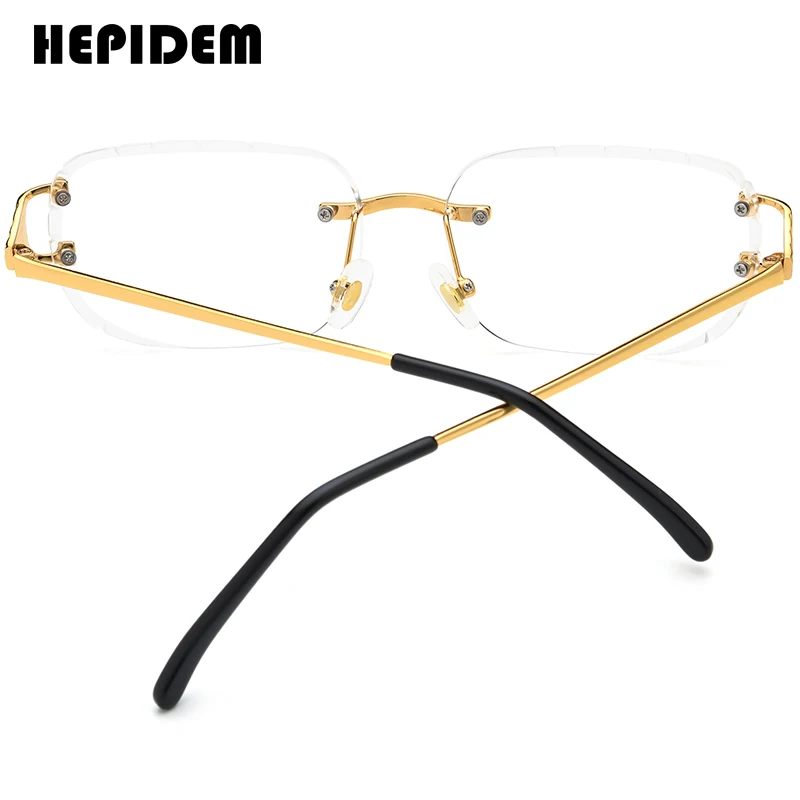 HEPIDEM Alloy Glasses Frame Men Brand Design Diamond Trimming Square Rimless Eyeglasses Women Retro Spectacles Eyewear 50274