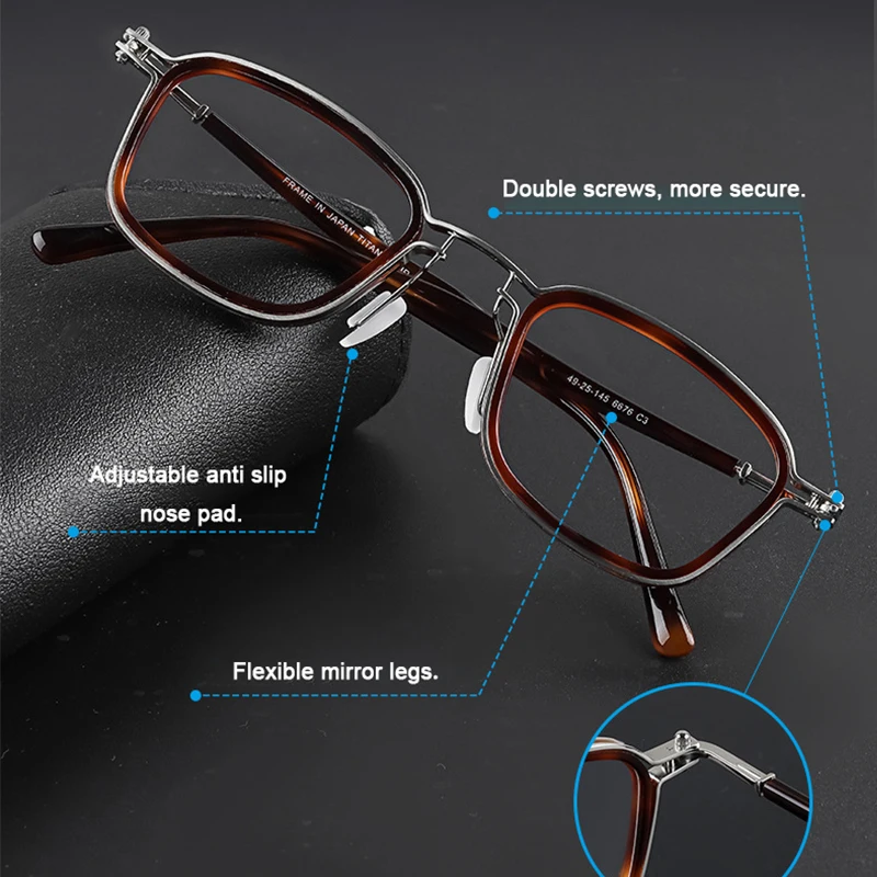 Italian Designer Replica Acetate Titanium Square Classic Eyeglasses Retro Steam Punk Glasses Frames Men Women Ultralight Eyewear
