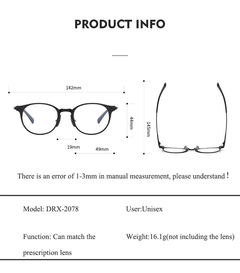 Japanese Designer Retro Oval Men Glasses Frame Pure Titanium Women Myopia Prescription Eyeglasses Anti Blue Lens Gafas DRX2078