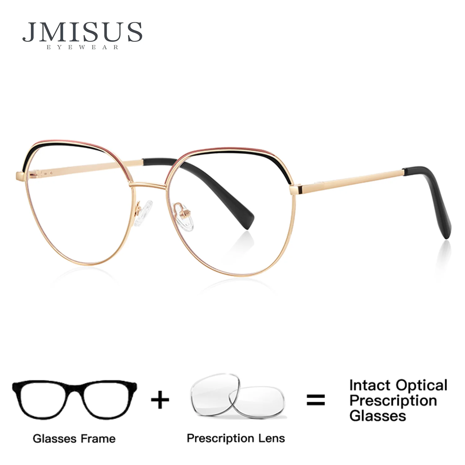 JMISUS Women Round Prescription Eyeglasses Minimalist Gold Metal Square Frame Custom Lenses Photochromic Progressive Eyewear
