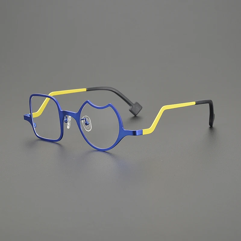 One Square One Round Titanium Glasses Frame Women Myopia Reading Eyeglass Personality Irregular Men Optical Prescription Eyewear