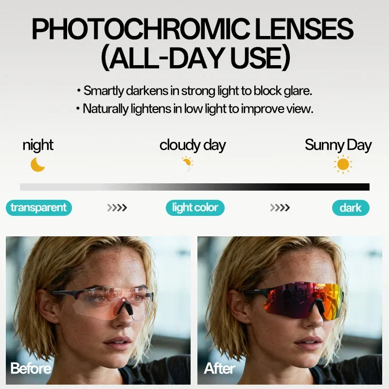 Scvcn Hot Photochromic Cycling Glasses Outdoor Sports Sunglasses Man Bicycle Eyewear Cycling Running Women Bike UV400 Goggles