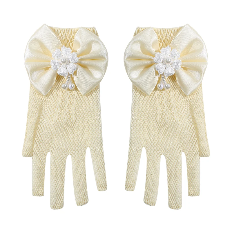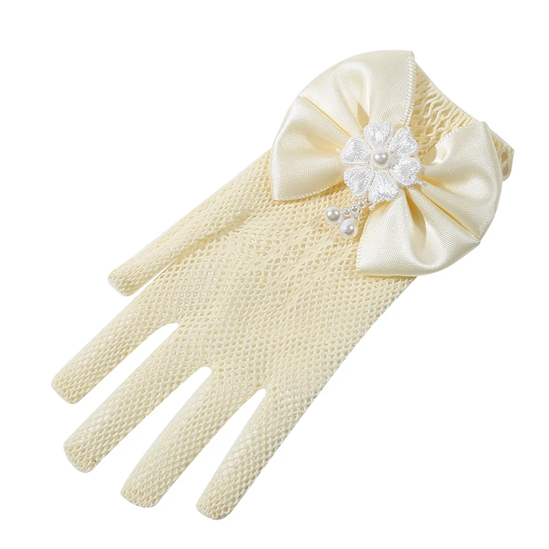 Mesh Bow White Gloves Dress Flower Girl Cute Simple Wedding Communion Party Princess Children Gloves Thin Short Elegant Mittens