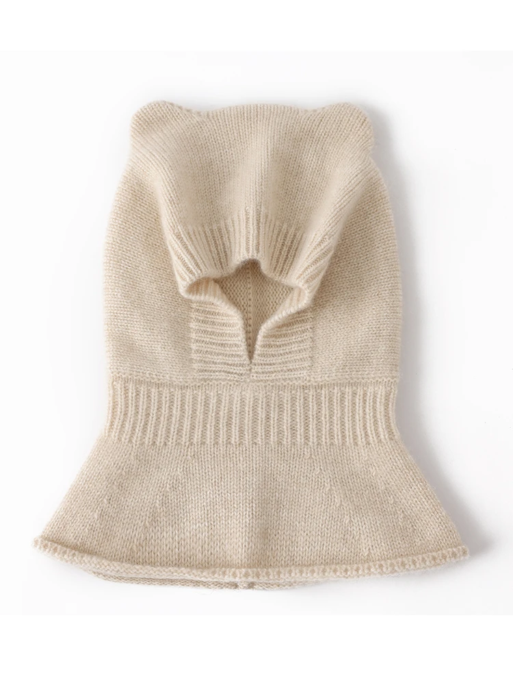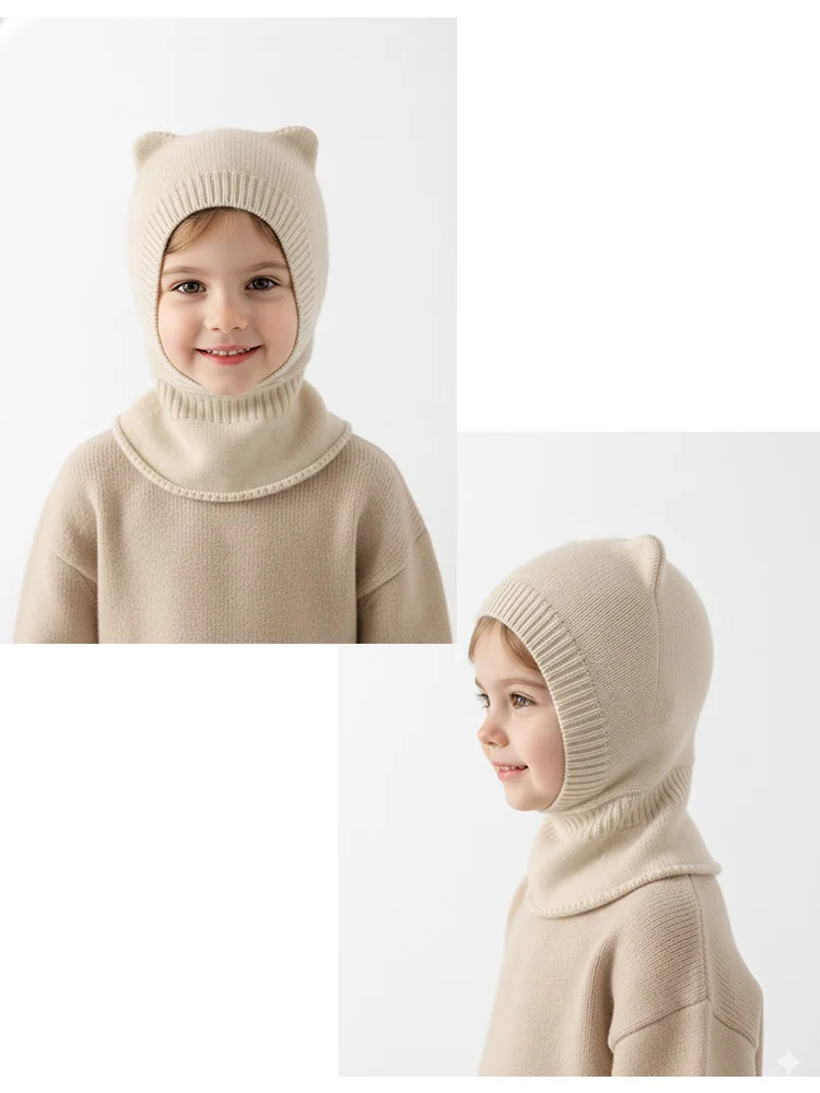 100% Cashmere Toddler Beanie Hat with Scarf Headwear Bear Ear Hooded Balaclava Cap Soft Warm Luxury Winter 10Mo-5T Boys Girls