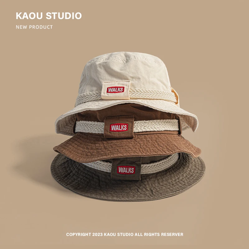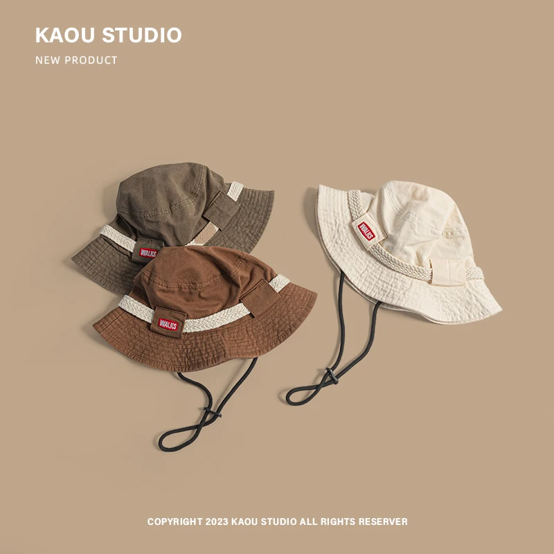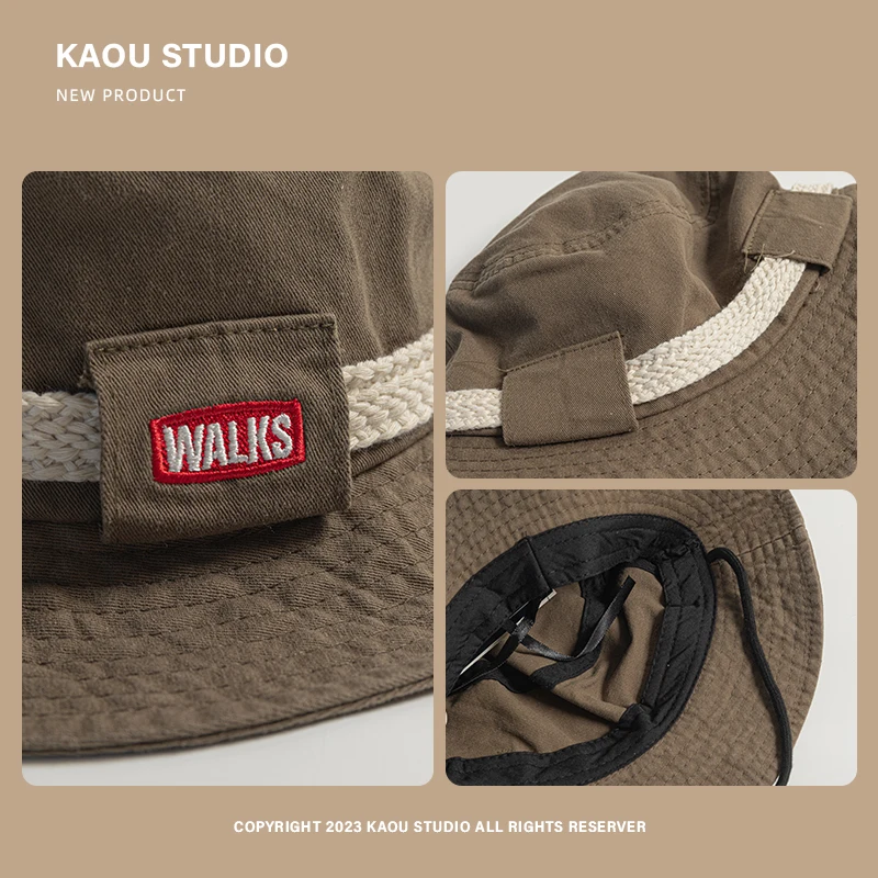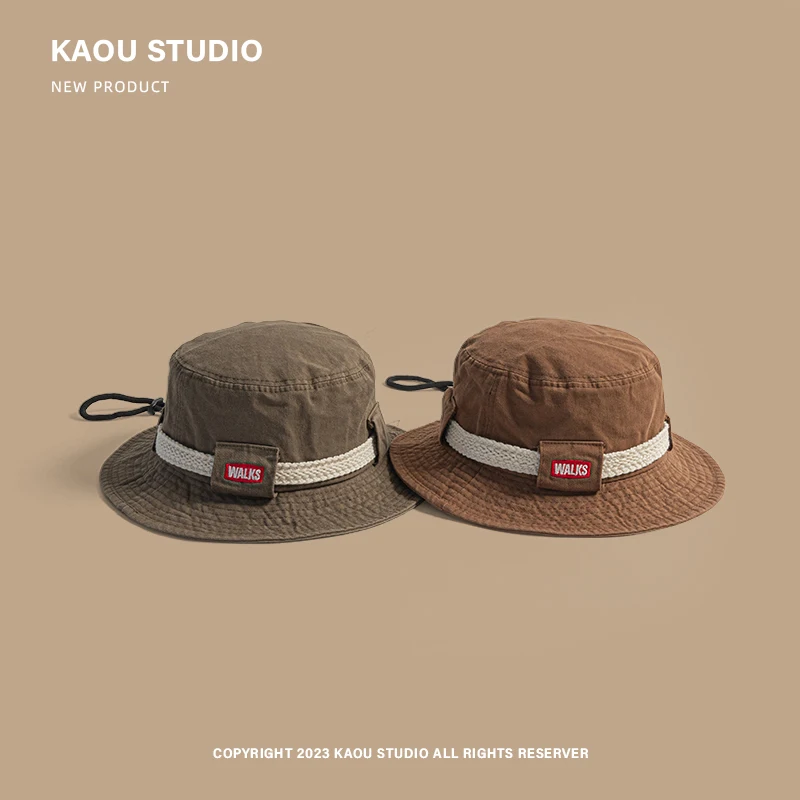 Outdoor Hiking Camping Sun Protection Men's Caps Spring and Summer New American Retro Casual Drawstring Bucket Hats for Women