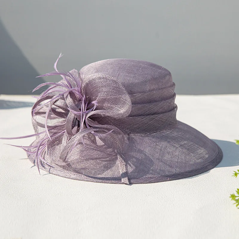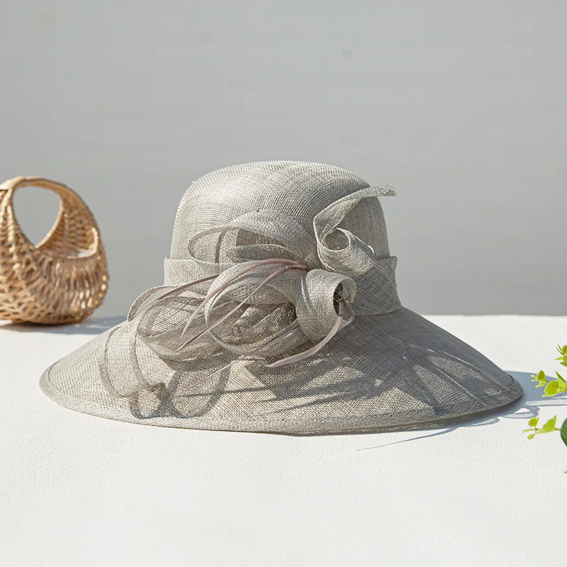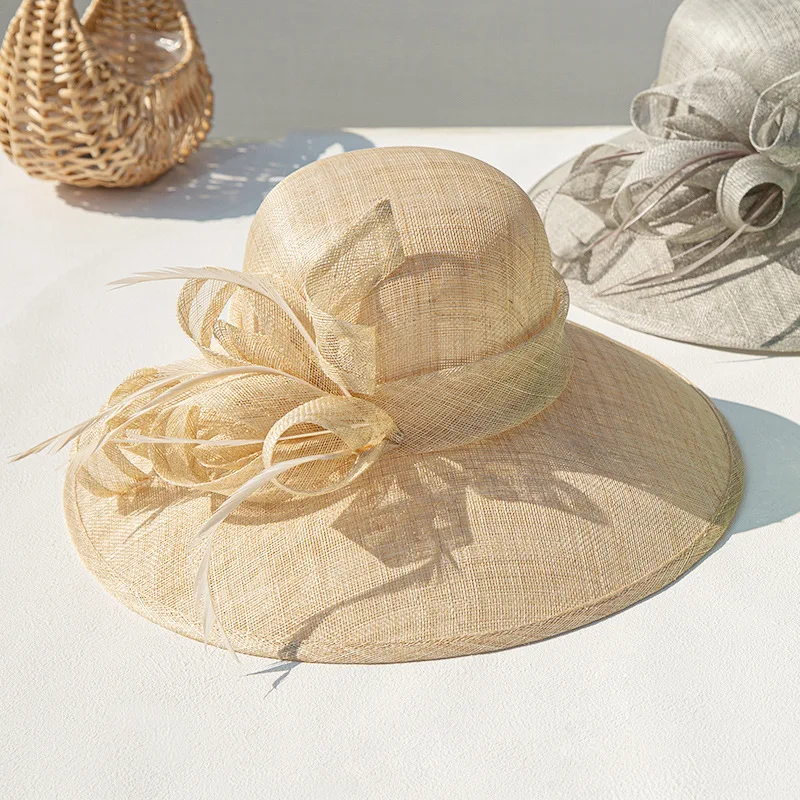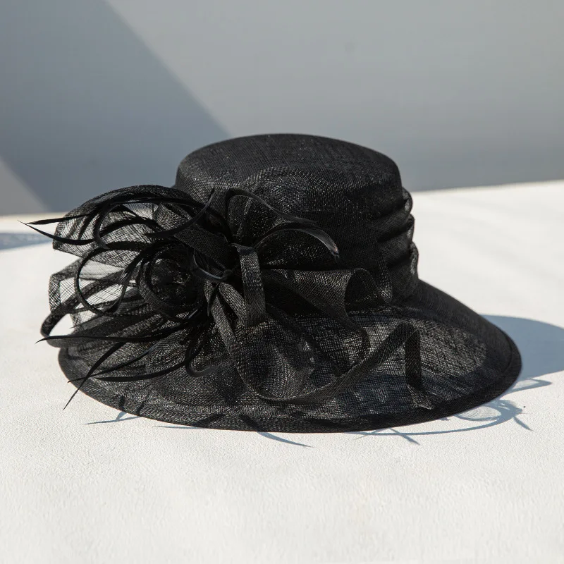 Philippine senior Flax yarn hat retro elegant Hepburn wind wide brim banquet top hat ladies travel sunscreen visor hat