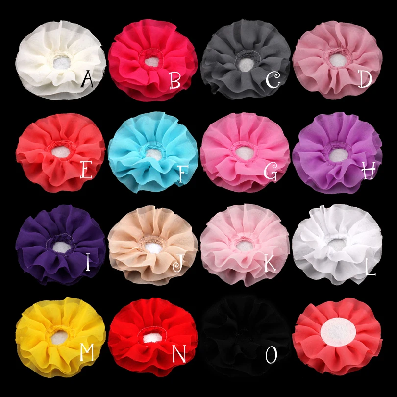 120pcs/lot 4" 15colors Solid DIY Big Ruffled Chiffon Flower For Girls Hair Accessories Artificial Fabric Flowers For Headbands