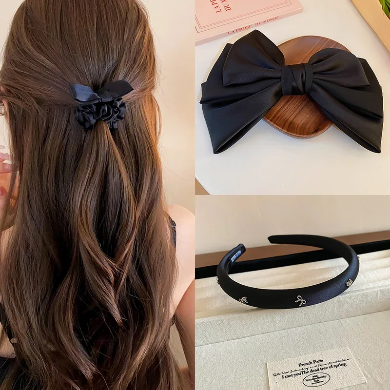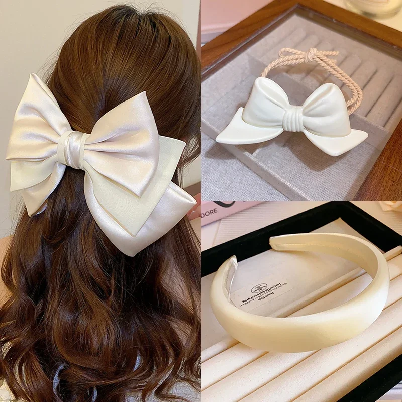 3 Pcs Oversized Bowknot Hair Clips Headband Hair Rope Set for Women Pink Solid Color Sponge Headbands Hair Accessories Sets