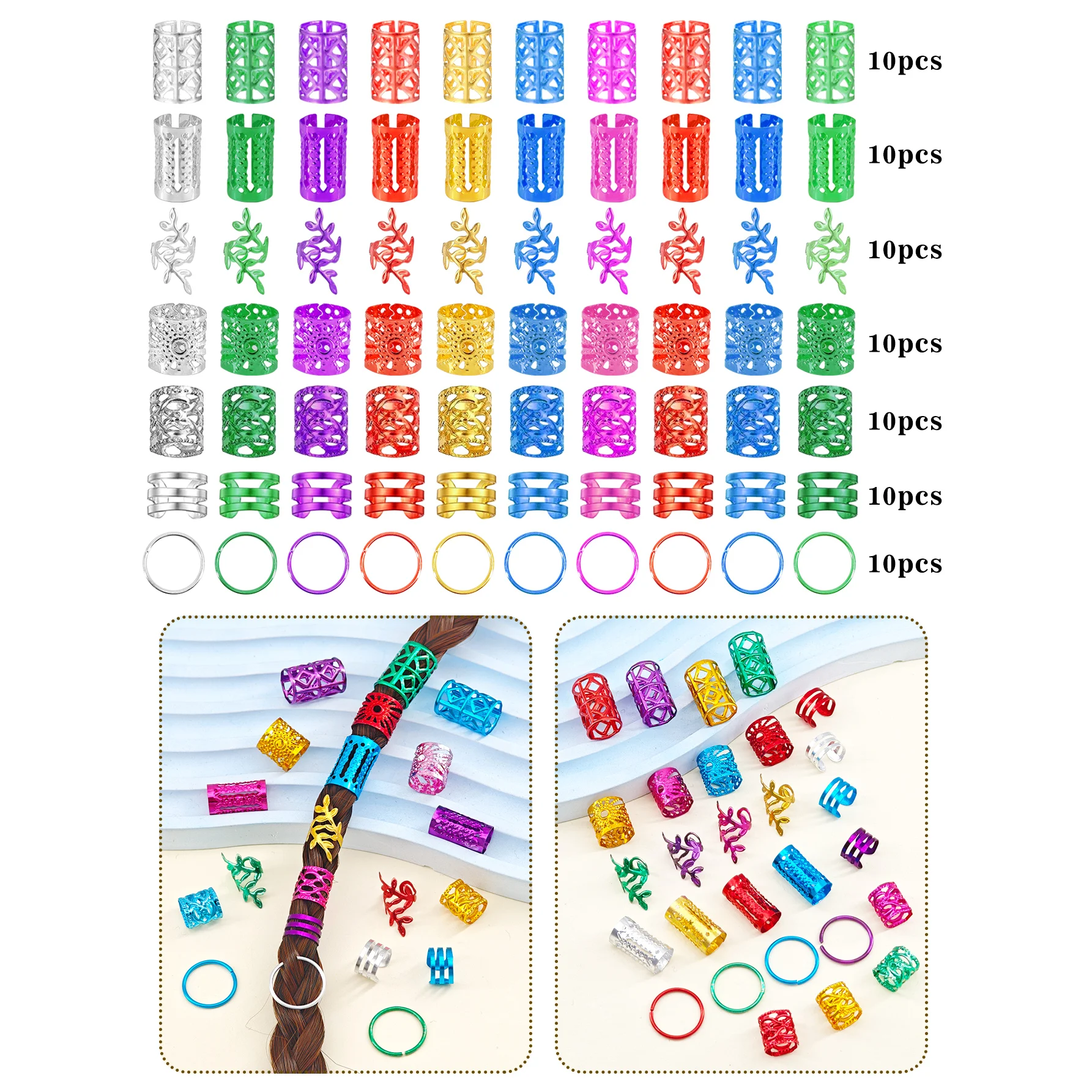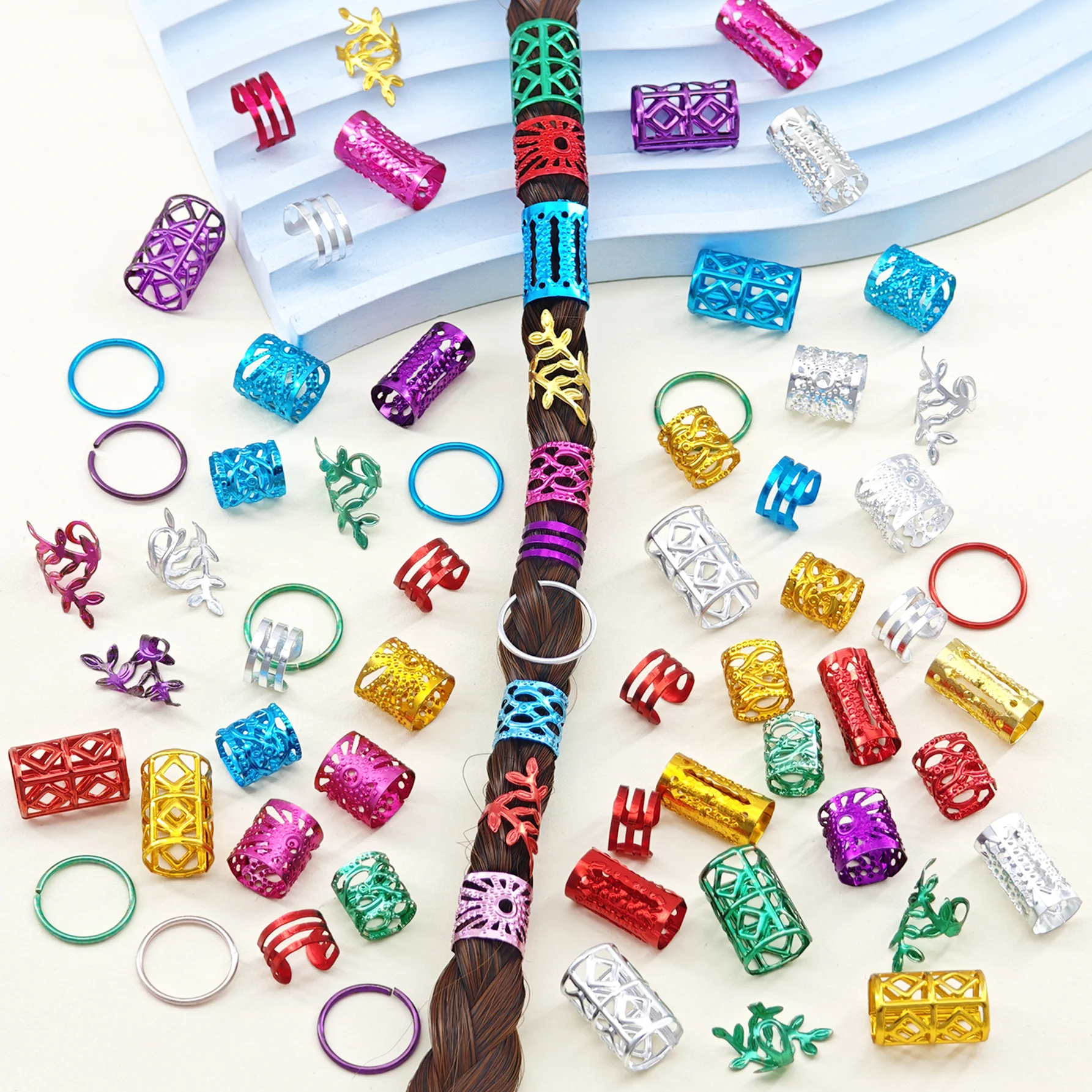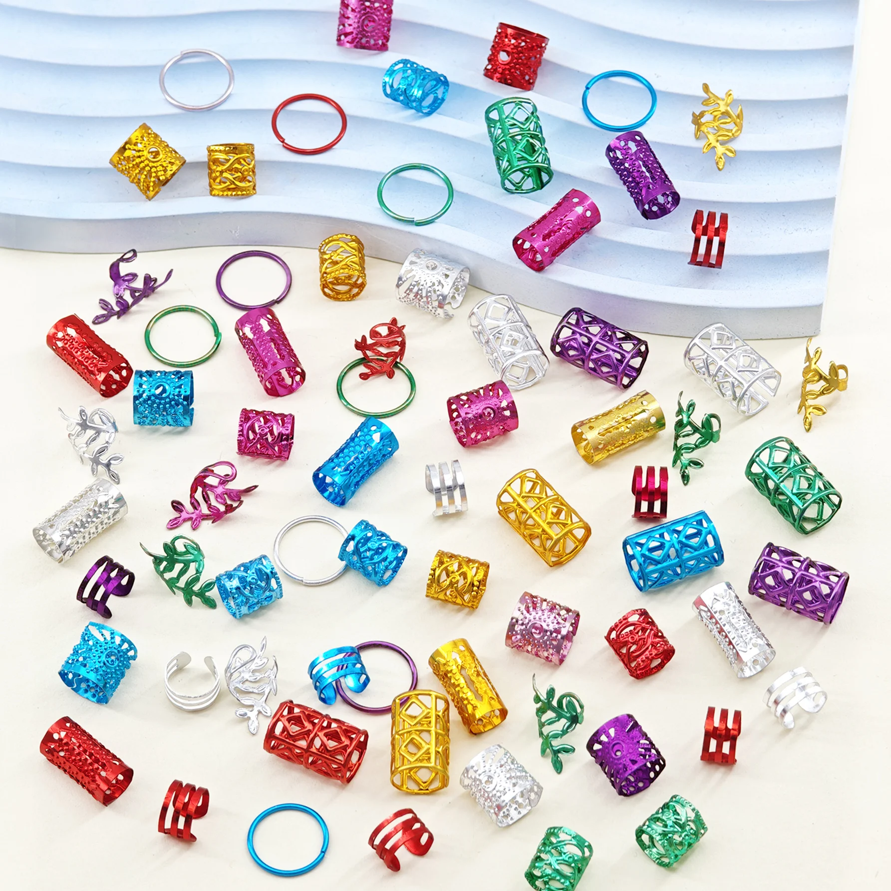 70Pcs Hair Beads Hair Cuffs Braiding Hair Rings Alloy Hair Charms For Loc Braids Hair Adjustable Metal Braid Hair Accessories