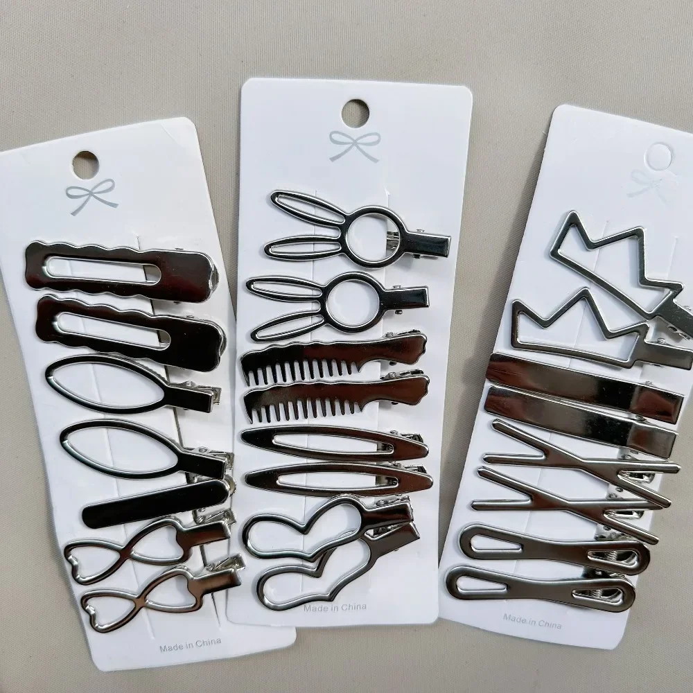 8/24Pcs Silver Y2k Hair Clips for Women Elegant Metal Duckbill Clip Gilrs Hairpins Side Bangs Barrettes Girls Hair Accessories
