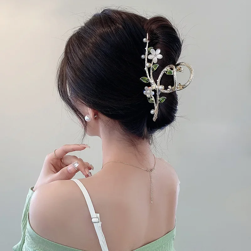 Faux Pearl Decor Flower Design Hair Claw Boho