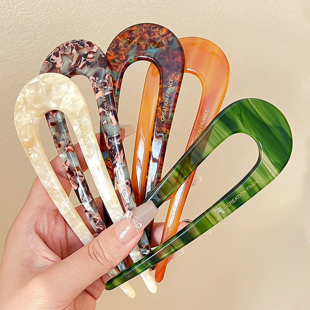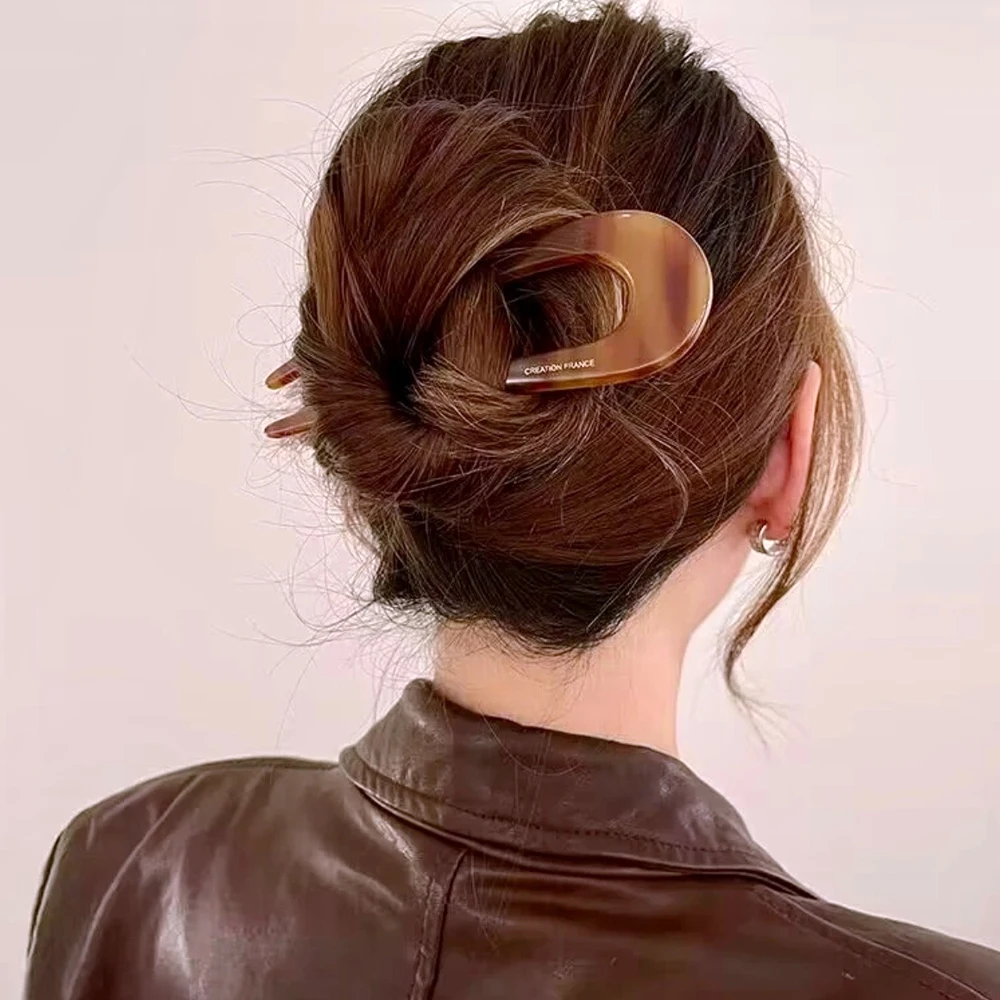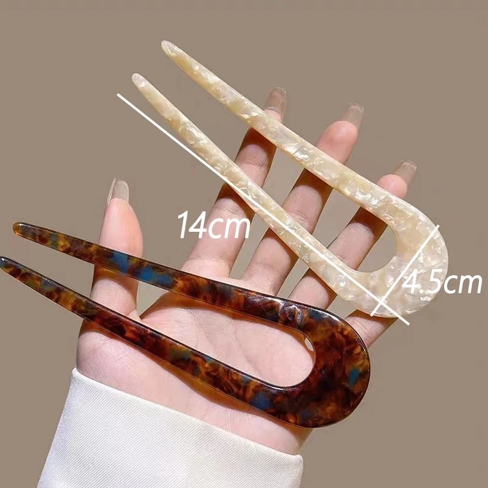 French Styles Hair Forks Tortoiseshell U Shape Hairpins Women Girls Bun Hair Sticks Summer Vintage Hairstyle Accessories