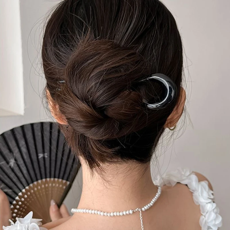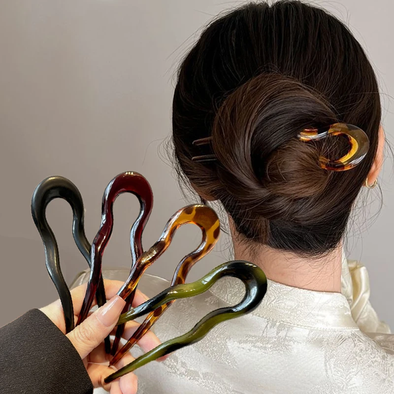 U-Shaped Hair Fork Fashion Tortoiseshell Acetate Acrylic Hairpin Geometric Design Headwear Hair Sticks Women Girls