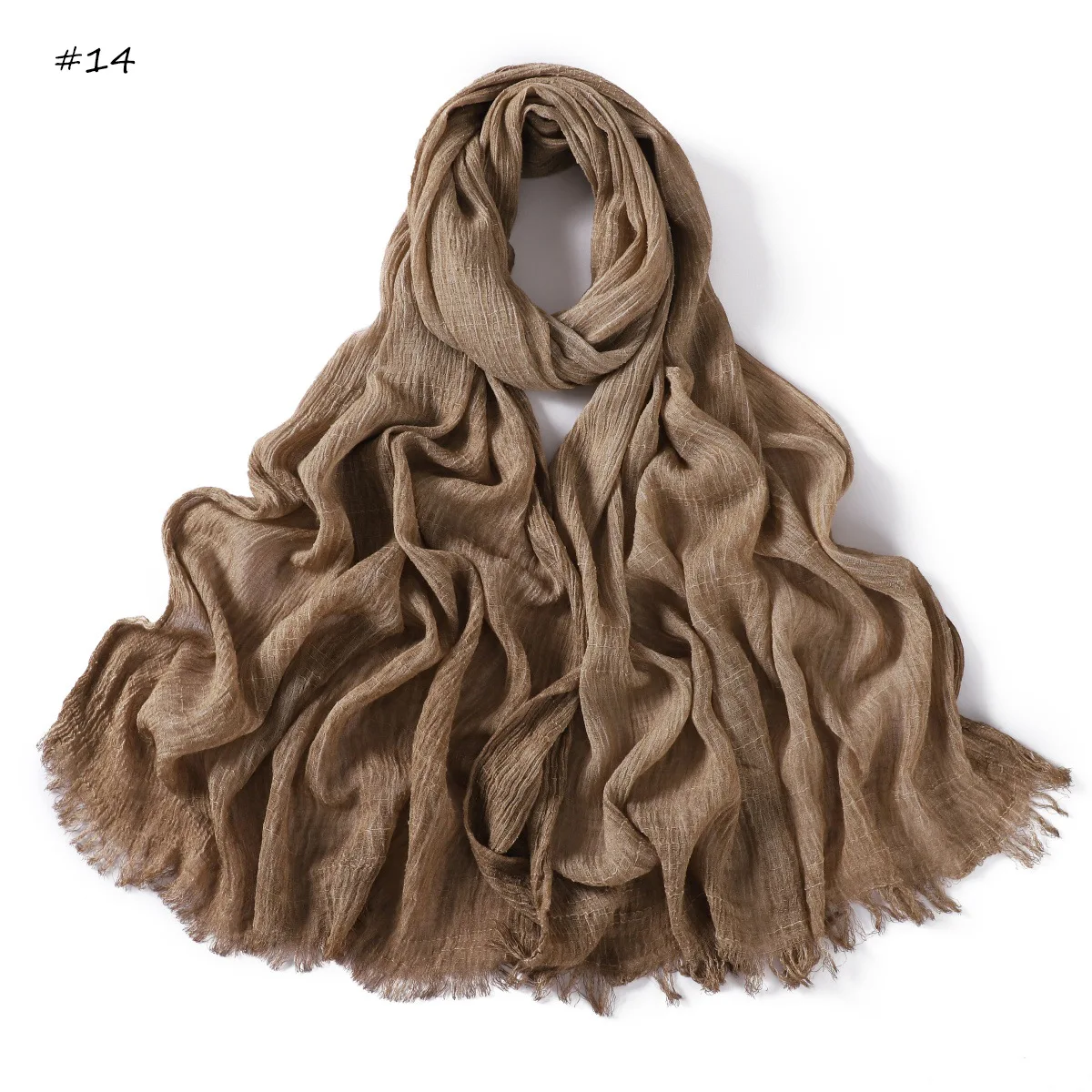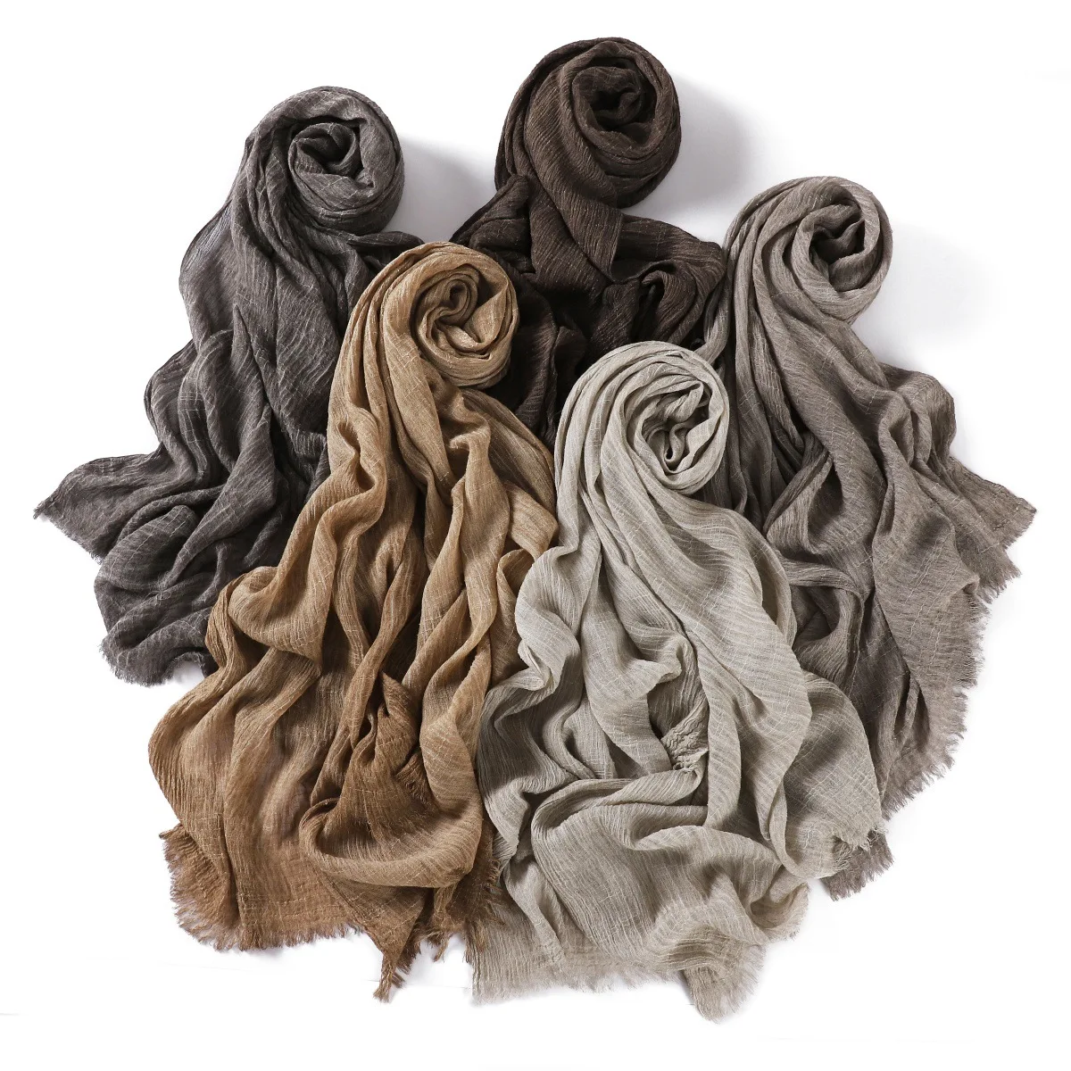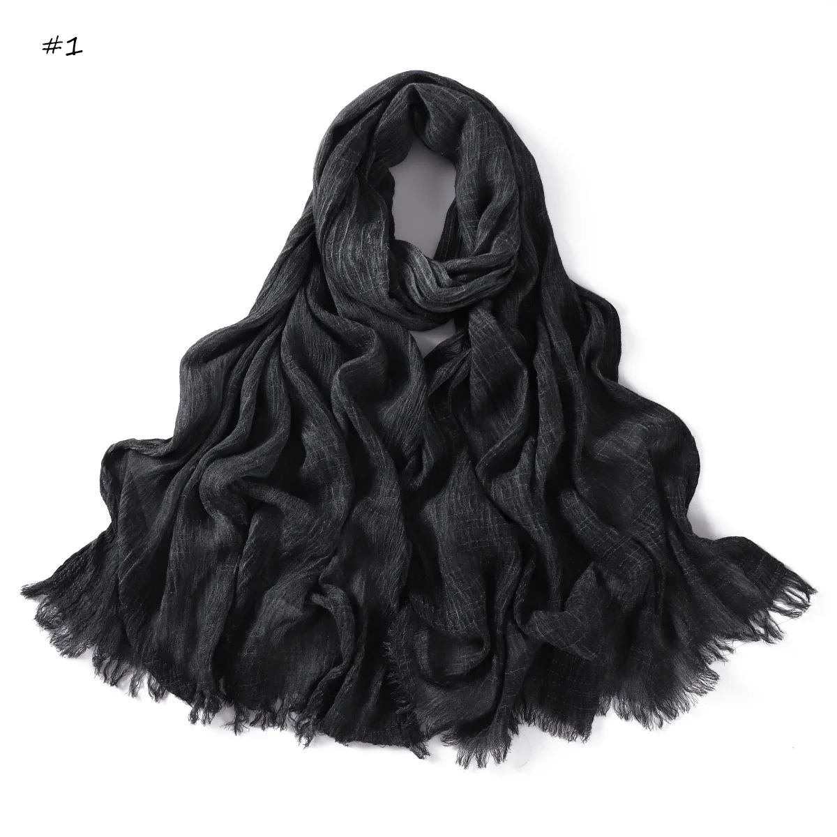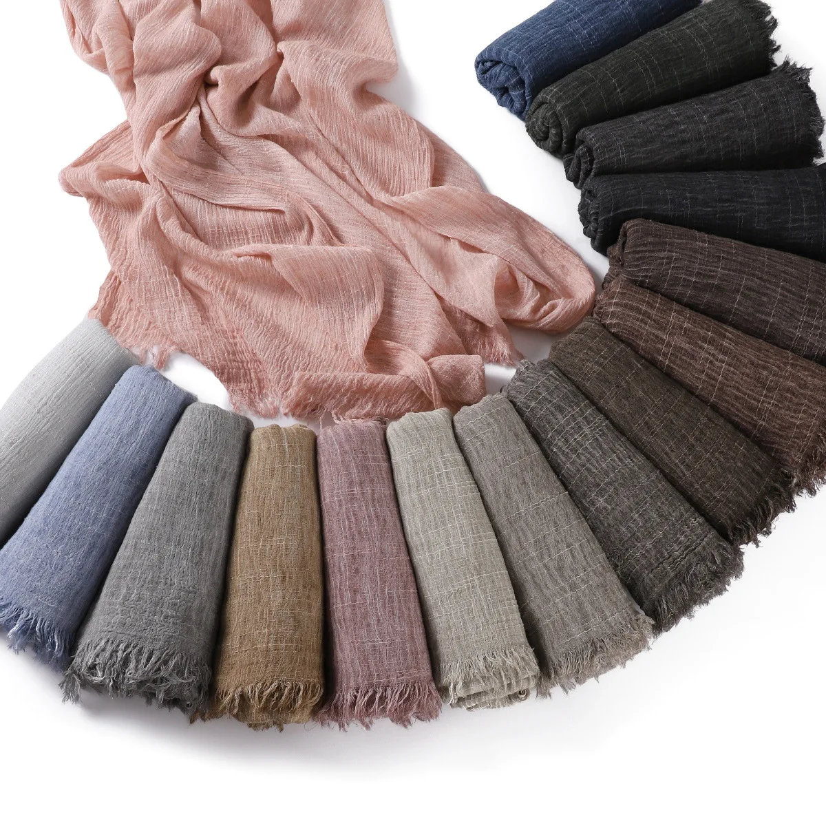 2025 New High Quality Solid Color Wrinkle Muslim Women Hijab Scarf Ramadan Shawl Headband Turban Islamic Hijabs Wraps Tassels