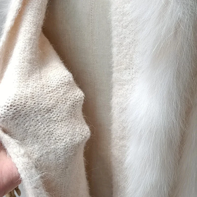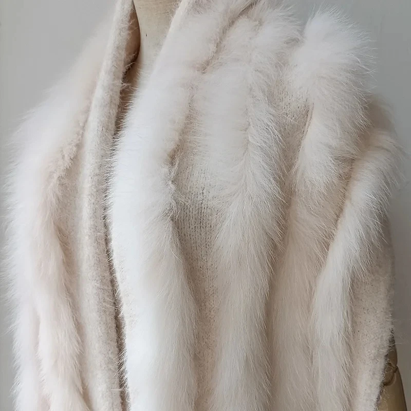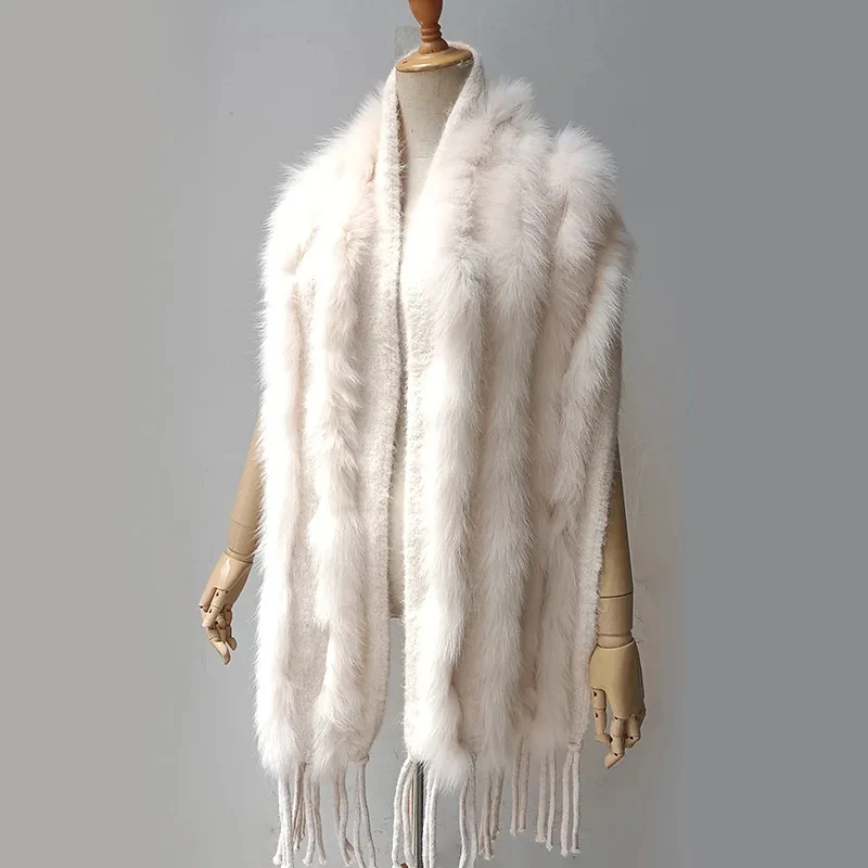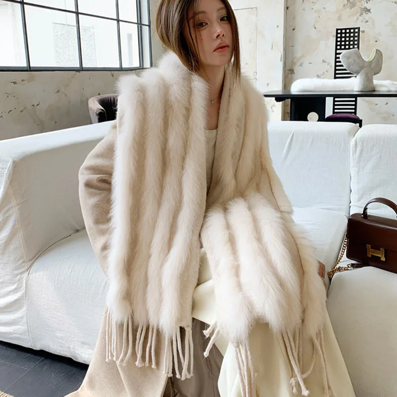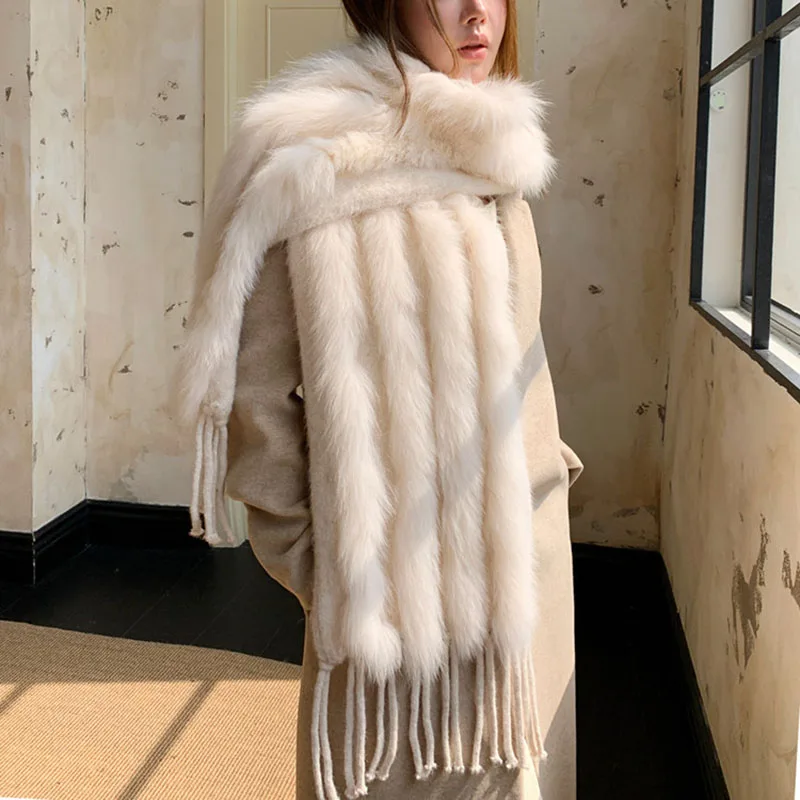 2026 Winter New Real Fox Fur Scarf With Tassel Warm Long Women Knitted Fur Shawl Wrap Wholesale Natural Fur Wide Scarf Shawl