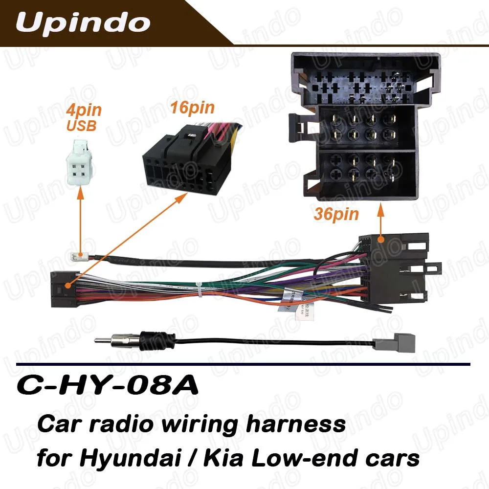 16Pin Car Android Radio Wiring Harness Adapter Cable for Hyundai Elantra Accent Azera i10 i20 i30 ix55 Tucson KIA Carens Picanto