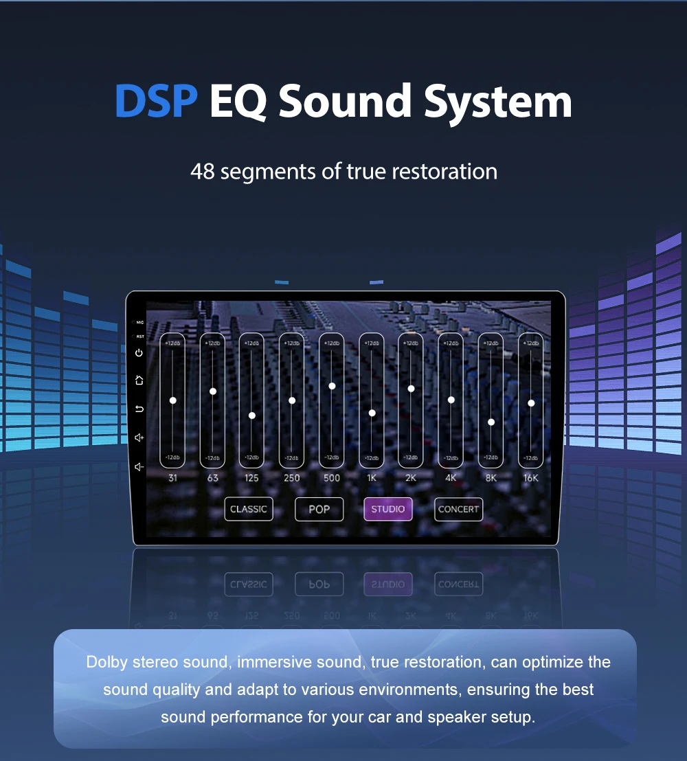 - Supports steering wheel controls, DSP audio, and 18-band EQ