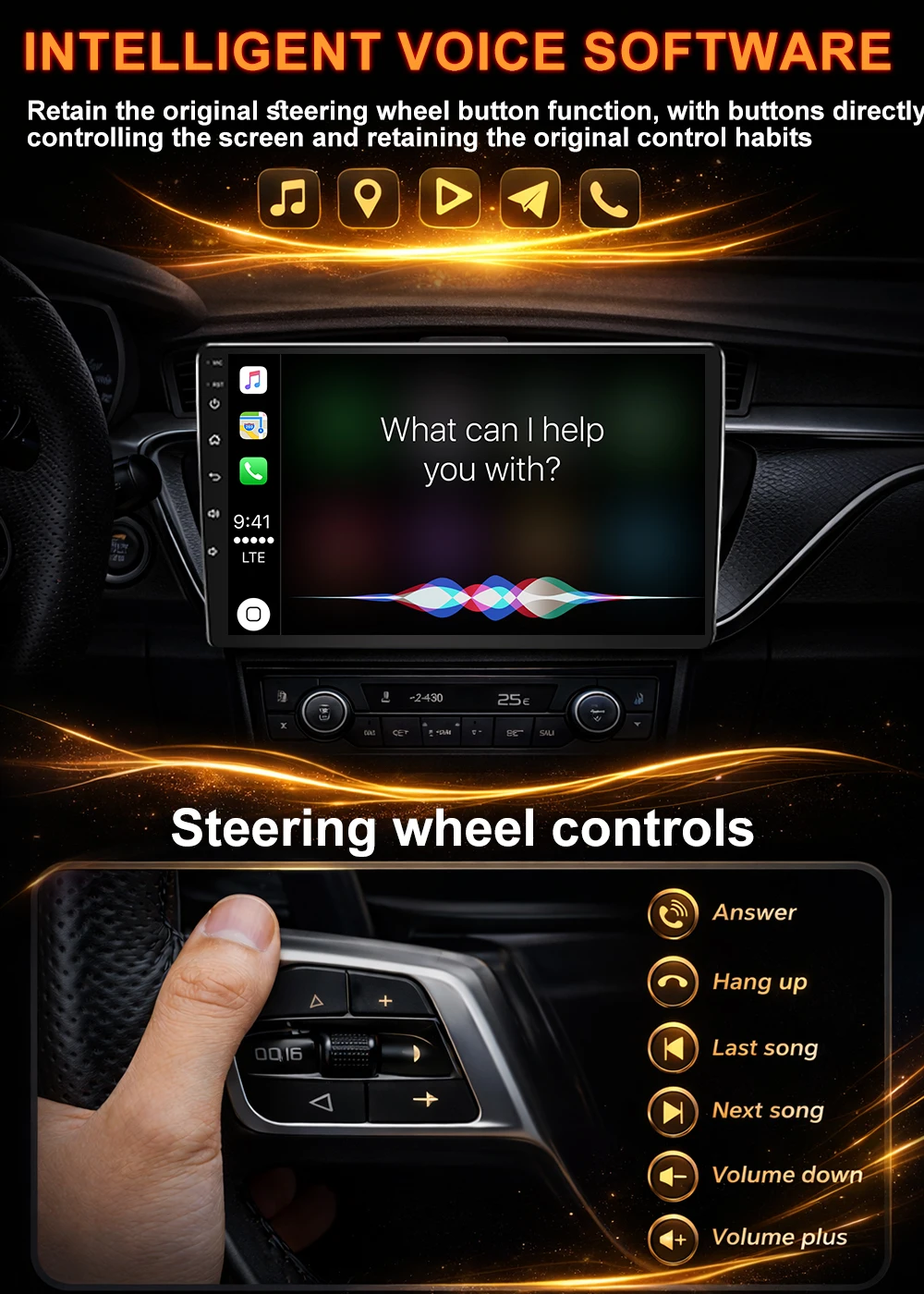 - Built-In Speaker/Microphone, wifi function, Support 3G Network, Support 4G Network, Support Can-Bus, Mobile Phone, MP3 players, Voice Control, dsp, CarPlay, android auto, Reversing Input, Split Screen, Support steering wheel control