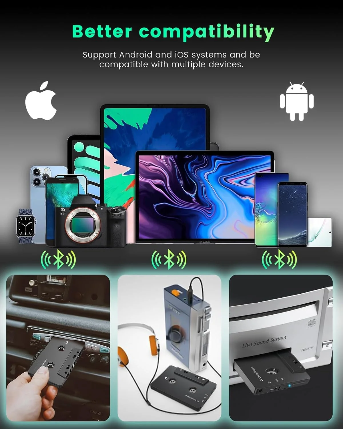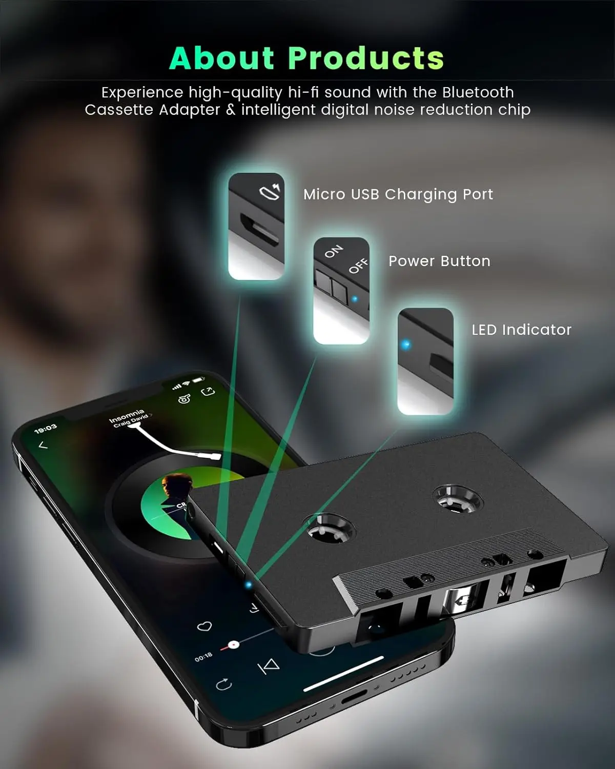 Cassette Bluetooth Adapter for Car, Bluetooth 5.1 Cassette Adapter, Car Audio Bluetooth Wireless Cassette Receiver