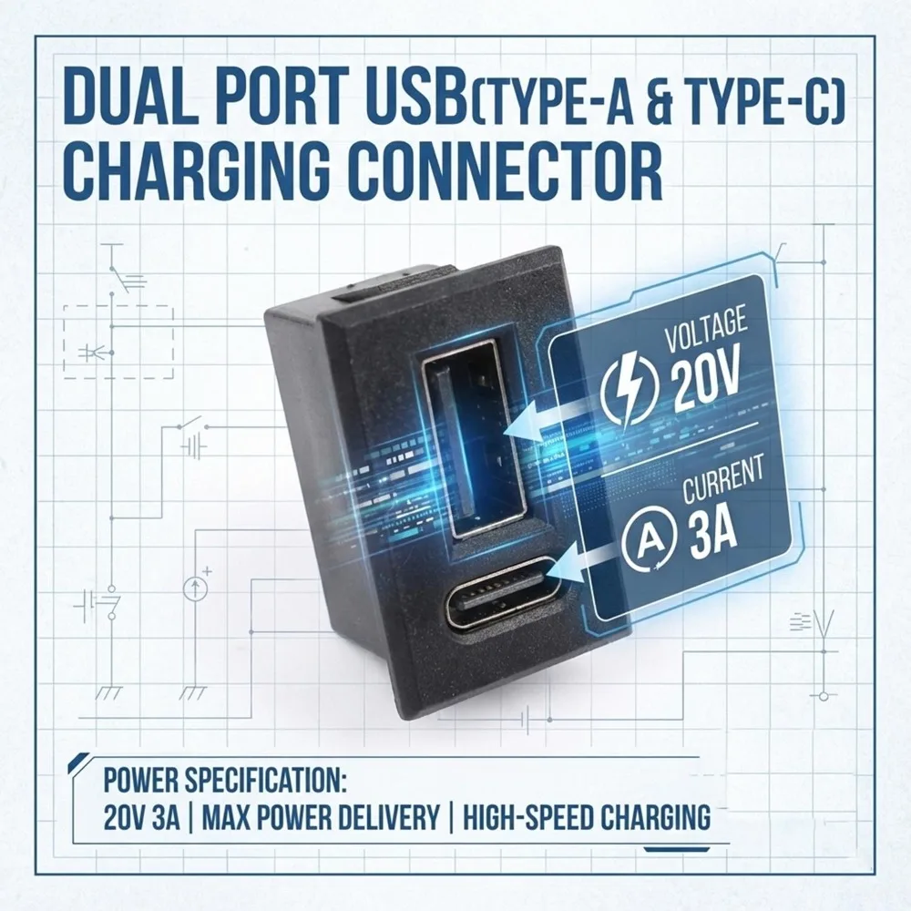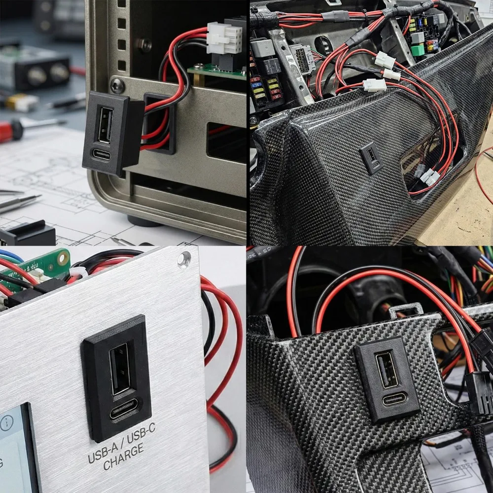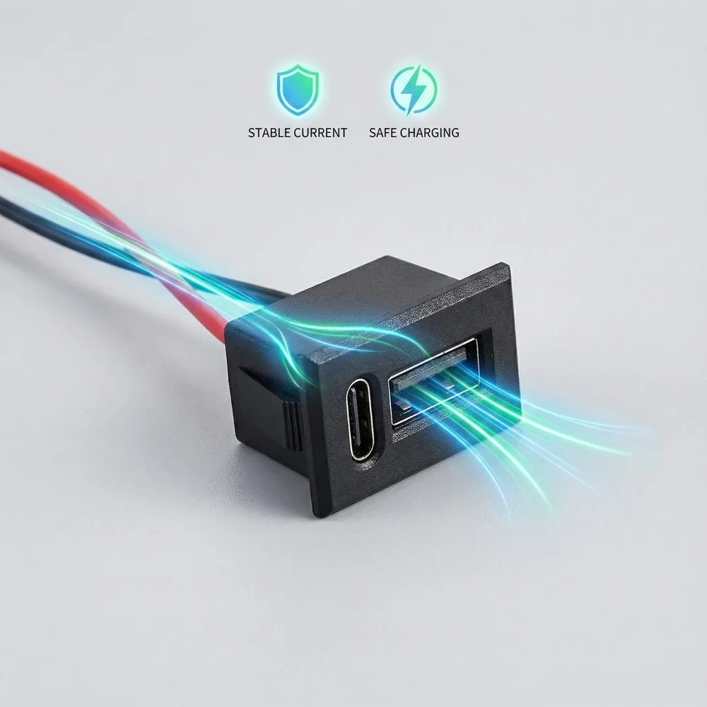 Dual Type C USB Receptacle Female Socket Connector Chassis Mount 2 Port Power Charging Adapter for Car Dashboard Auto Parts Kit
