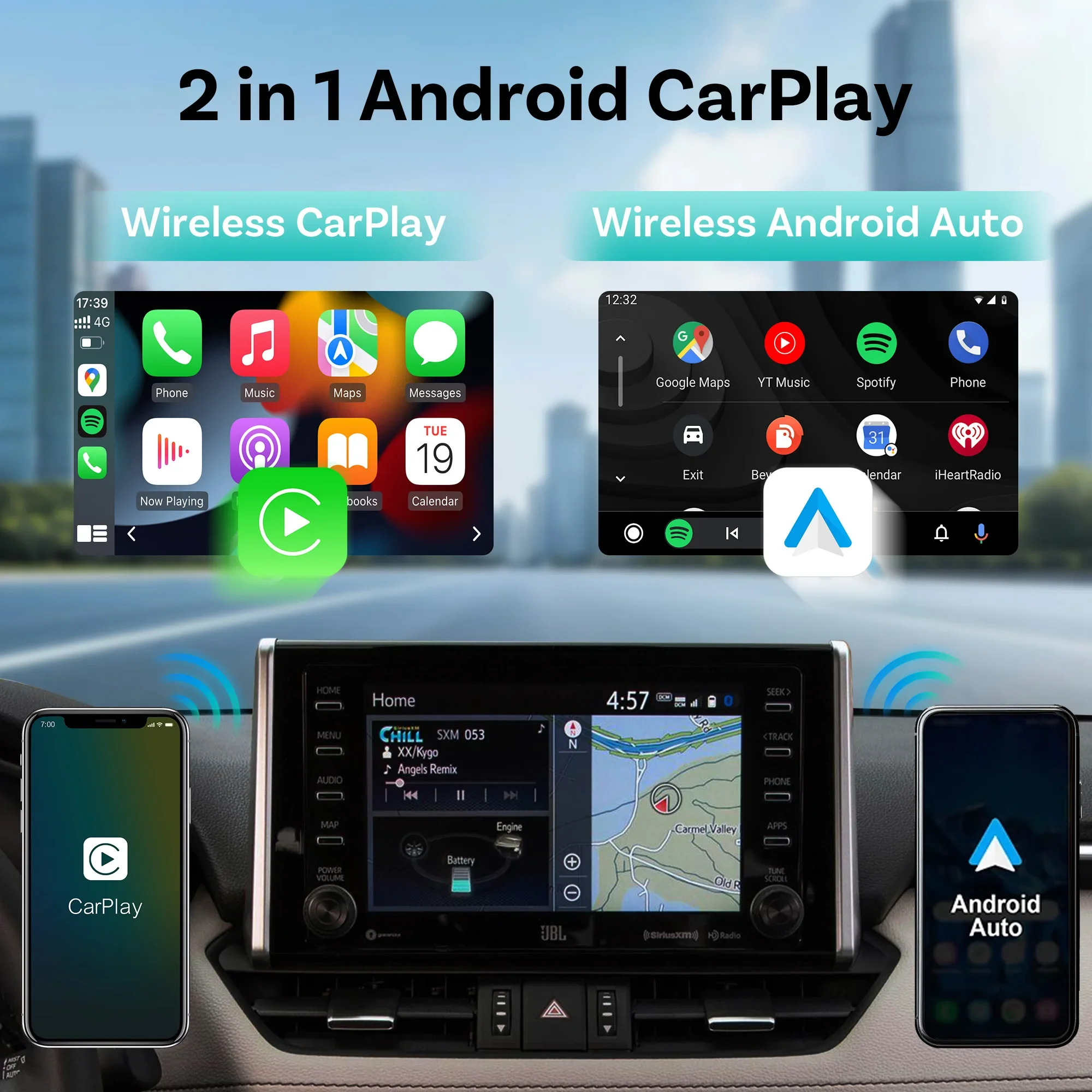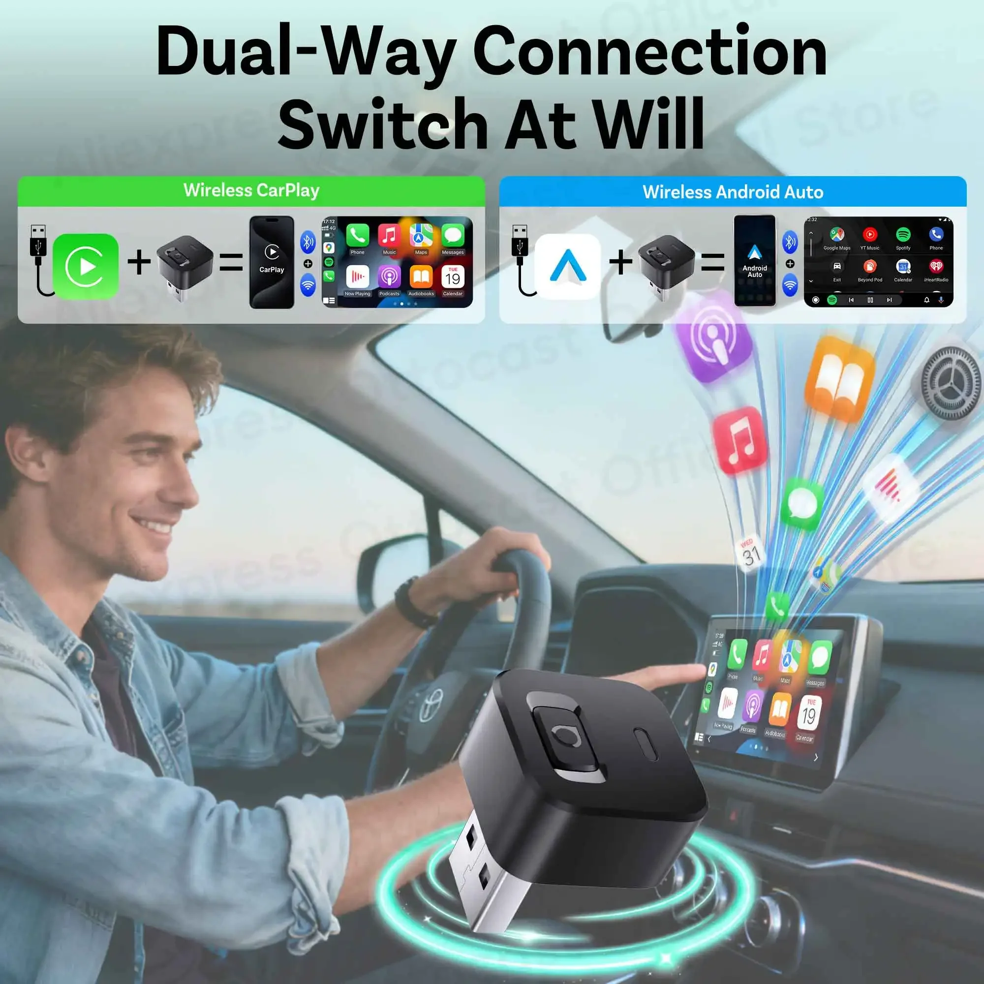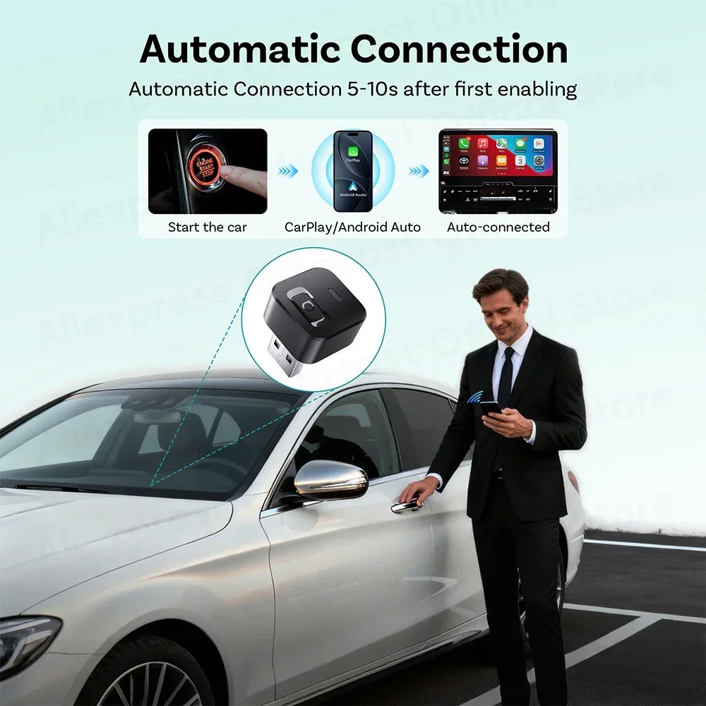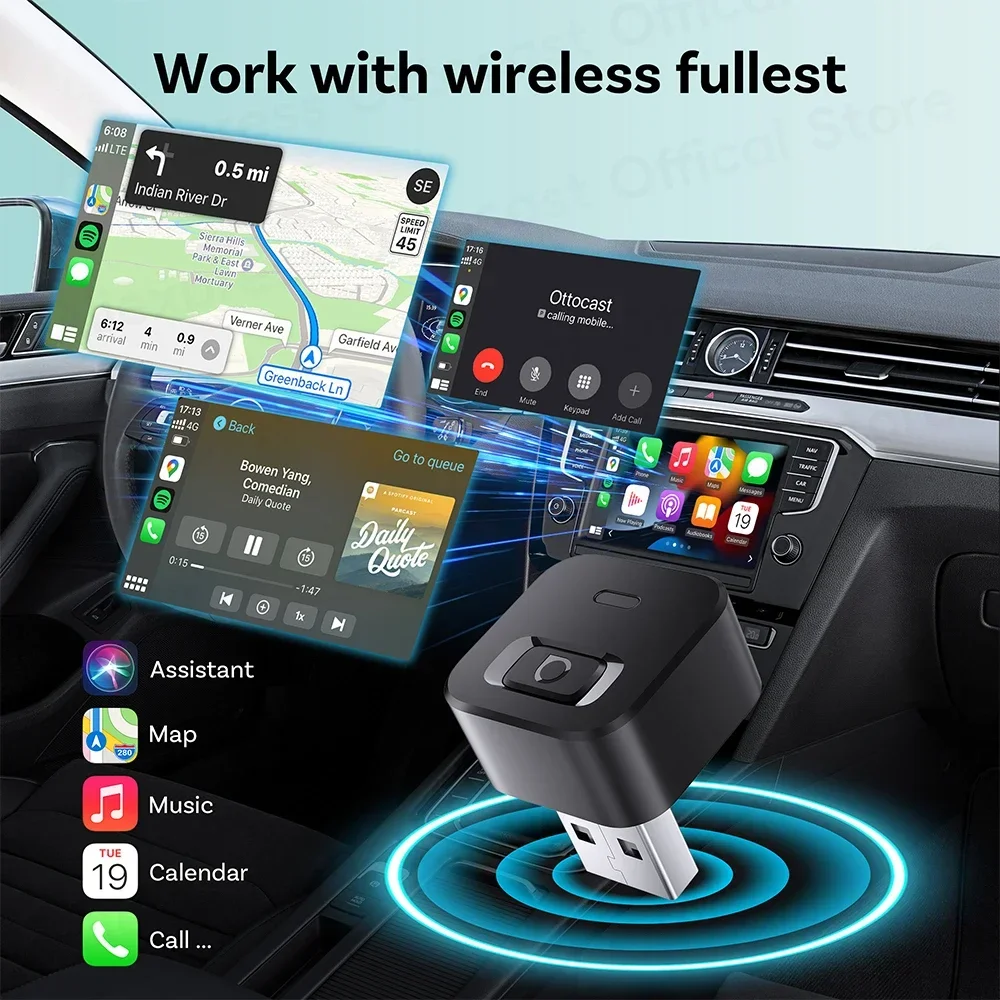 OTTOCAST Tiny Wireless CarPlay Android Auto Adapter Mini Dot Dongle Car Accessories for Ford Toyota Chevrolet Honda Nissan Kia