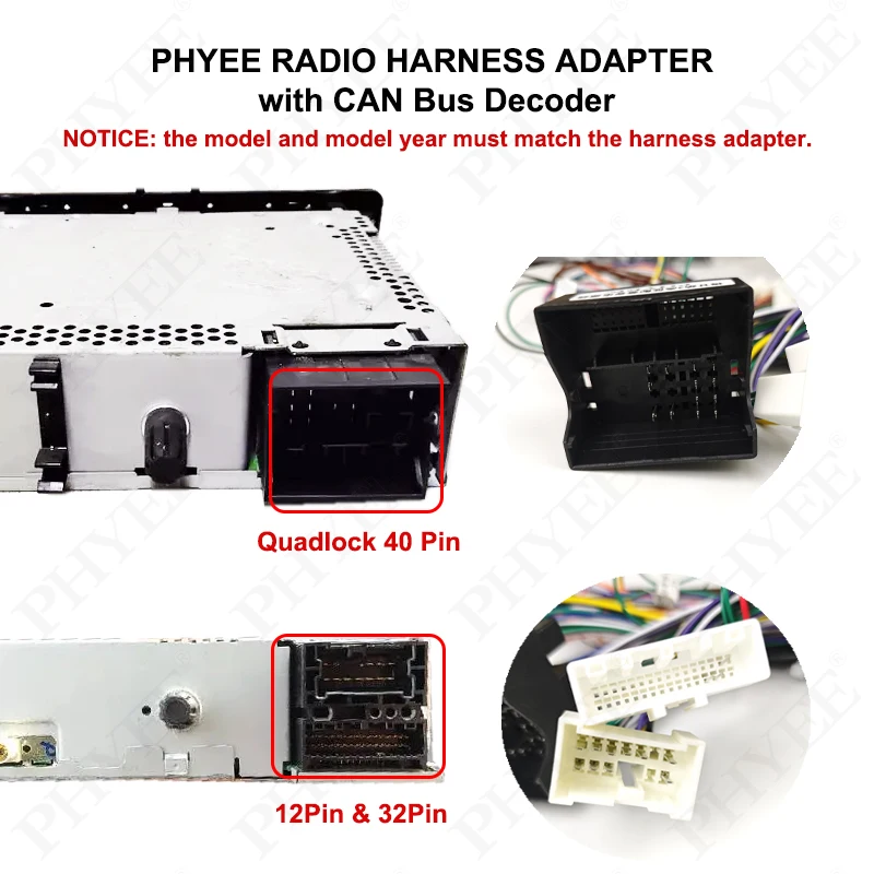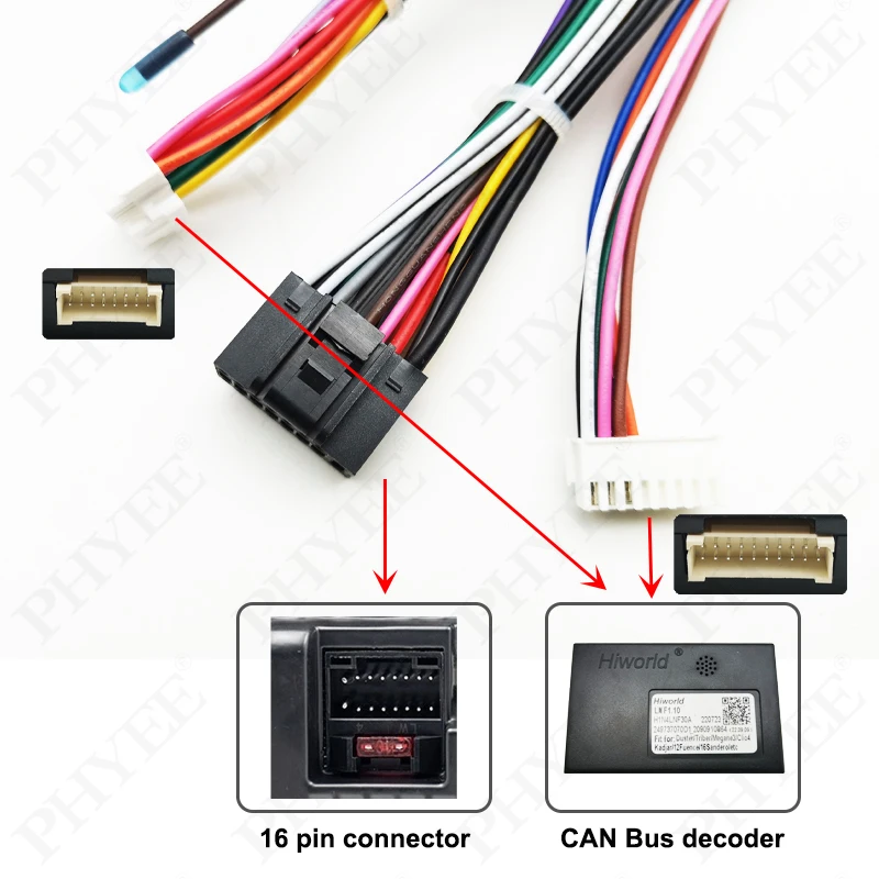 Quadlock 12Pin/32Pin CAN Bus Decoder Harness, SWC Retention, P&P 16Pin Android, for Renault Megane Mk3 Scenic 3 Fluence 09-15