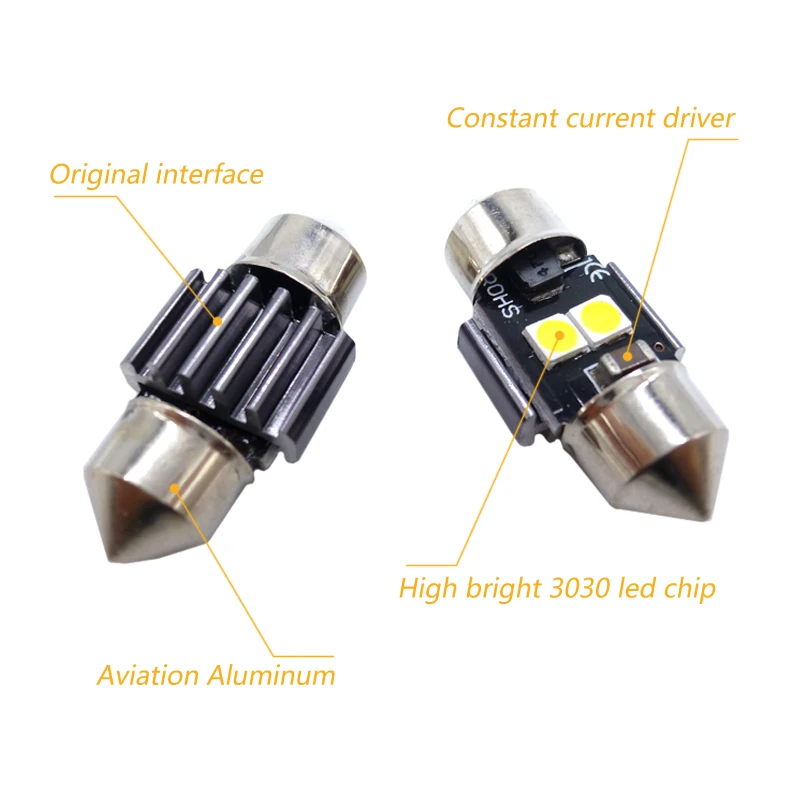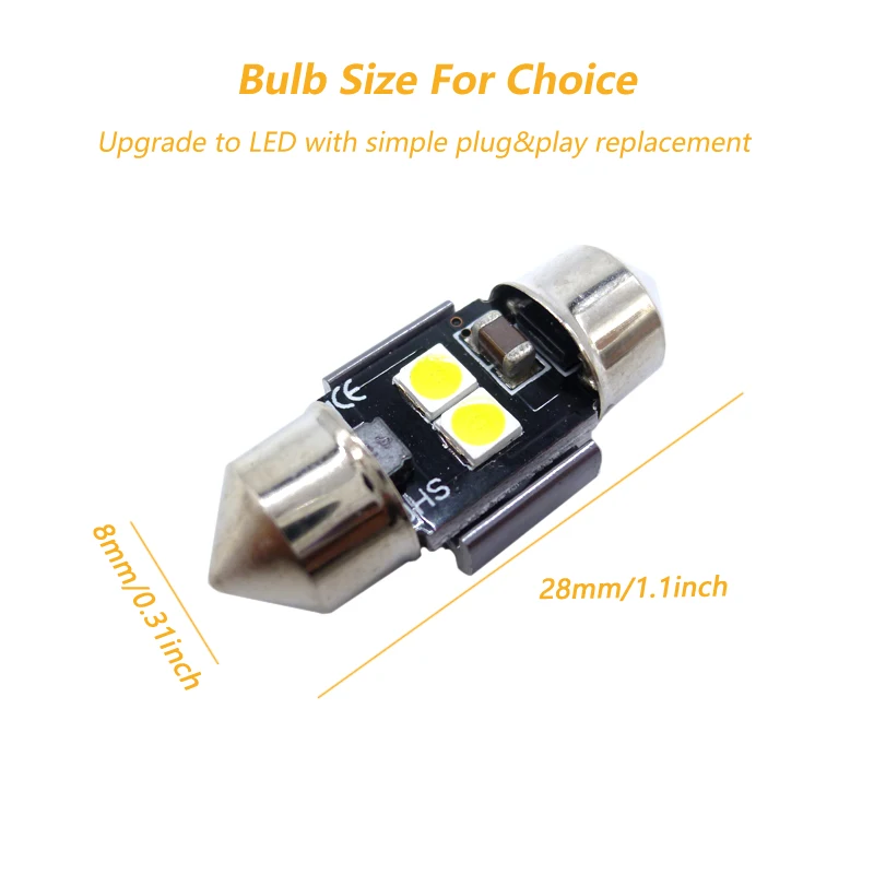 2x 28mm 29mm 6614F/6641/6614/F30-WHP/TS-14V1CP LED Interior Bulbs Car Vanity Mirror Lights Sun Visor Fuse Light White 12V 24V