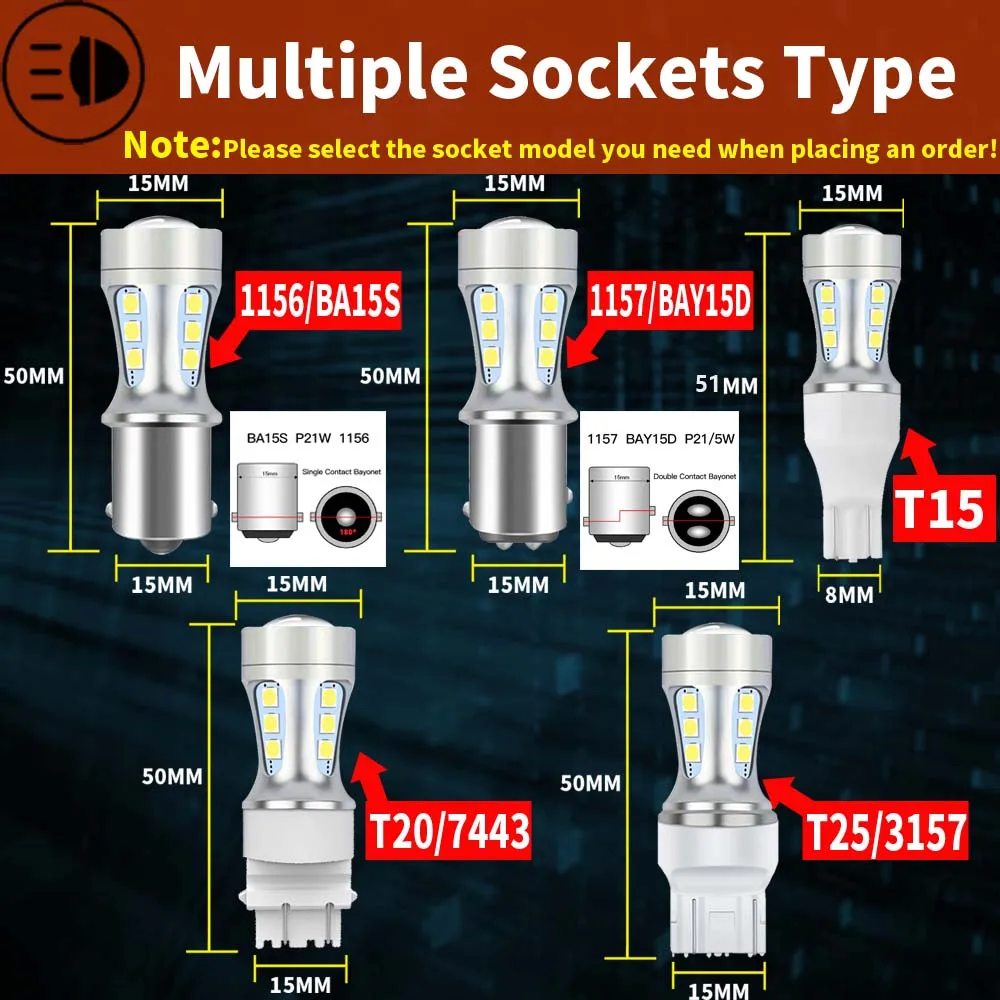 2x P21W BA15S LED Canbus 1156 BAY15D 1157 P21/5W LED Bulbs T15 R5W Car Lights 6500K White Brake Lights Reverse Lamp DRL T20 7443