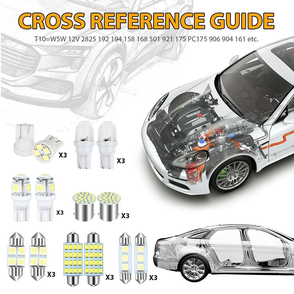 Car LED Lights Interior Lights 6000K 12V T10 168 2825 W5W 921 Kit For Car Vehicle Map Dome Door Trunk License Plate Light Bulb