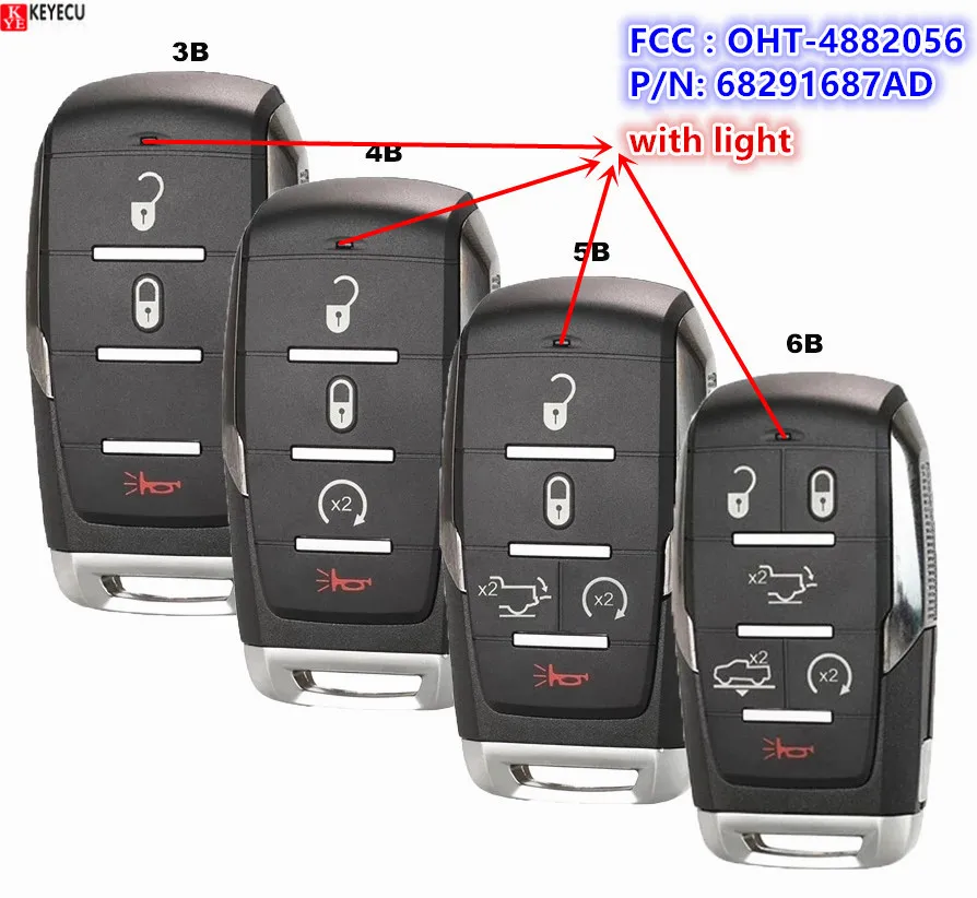 3/4/5/6B Smart Prox Remote Key 433.92Mhz PCF7939M / HITAG AES / 4A Chip FCC ID: OHT-4882056 for Dodge Ram 1500 Pickup 2019 2020