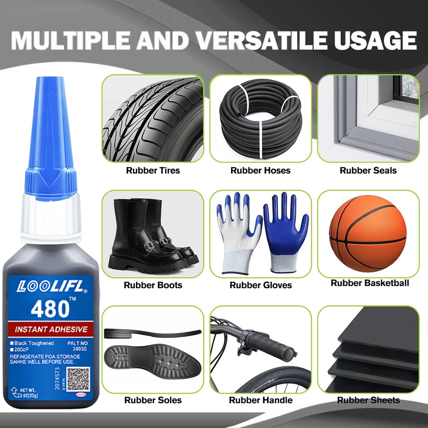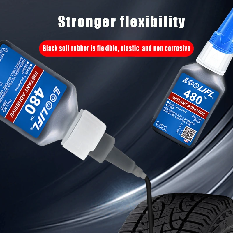 20g 480 black adhesive is suitable for repairing car tires, bumpers, and plastic parts. It is a universal high-quality adhesive