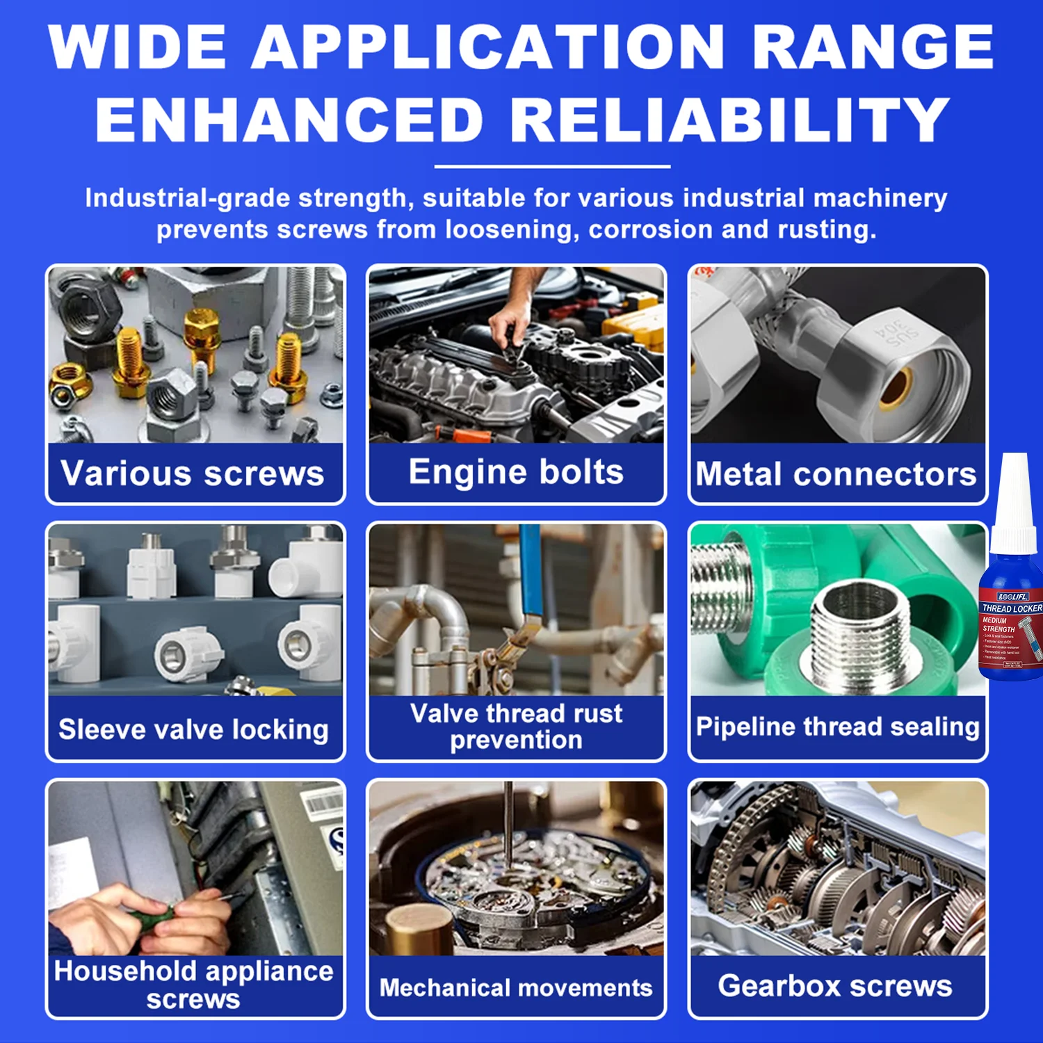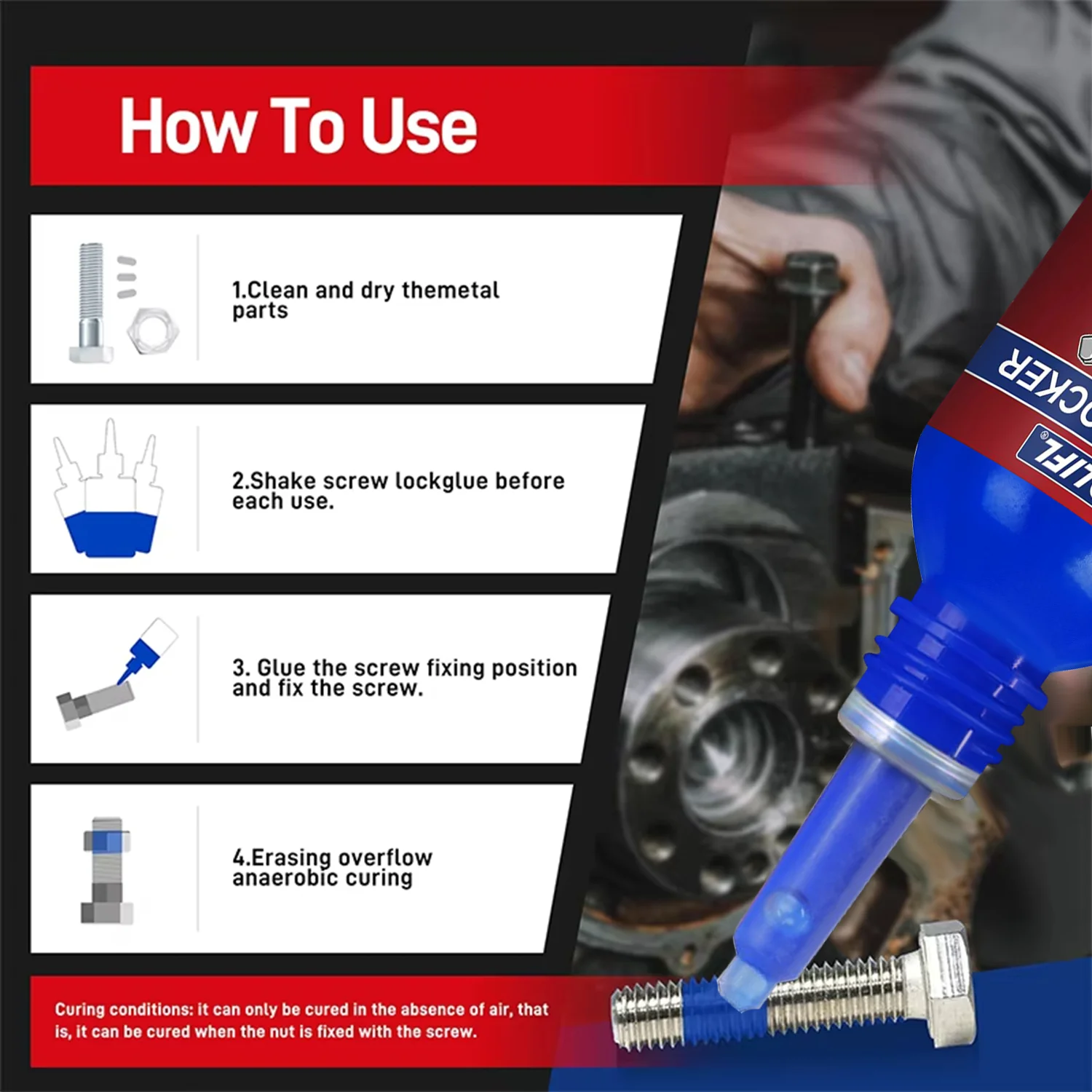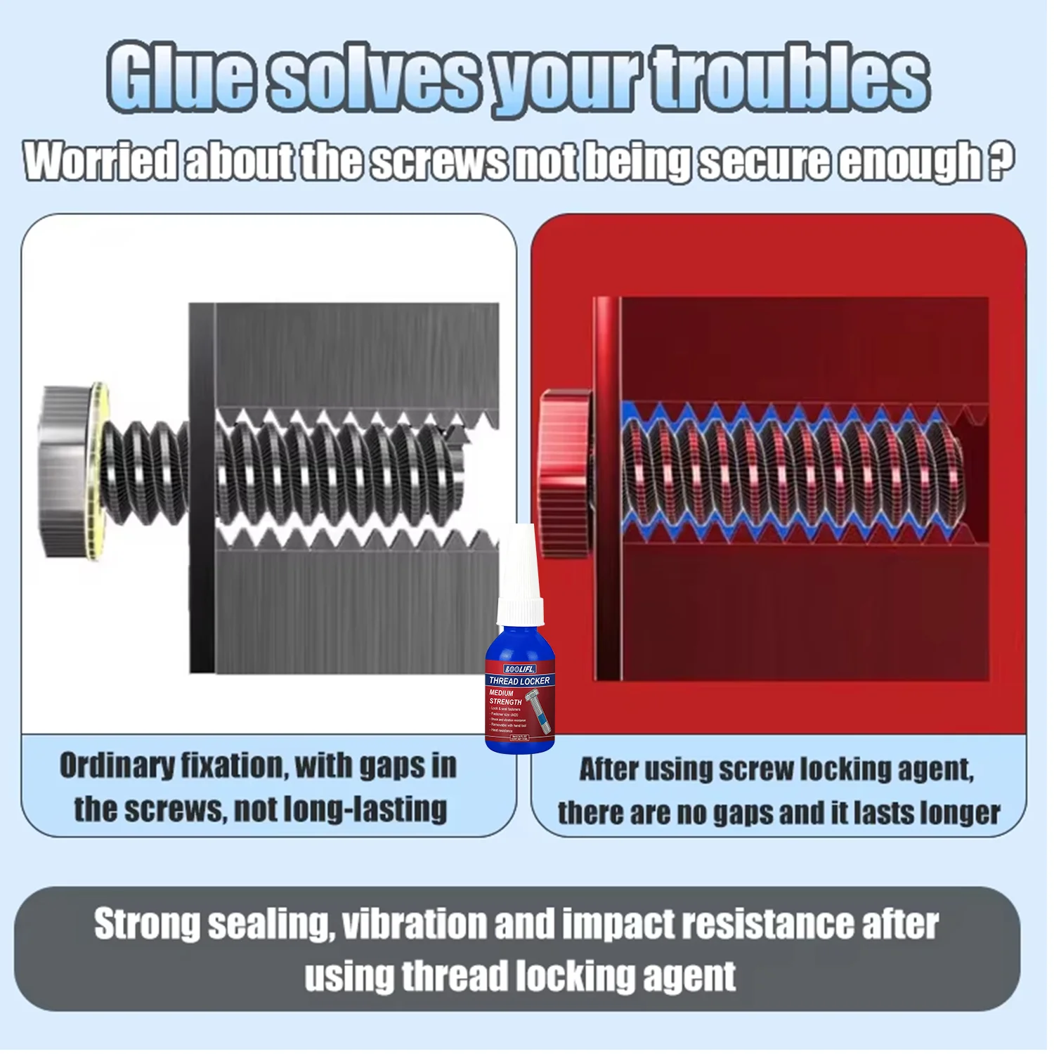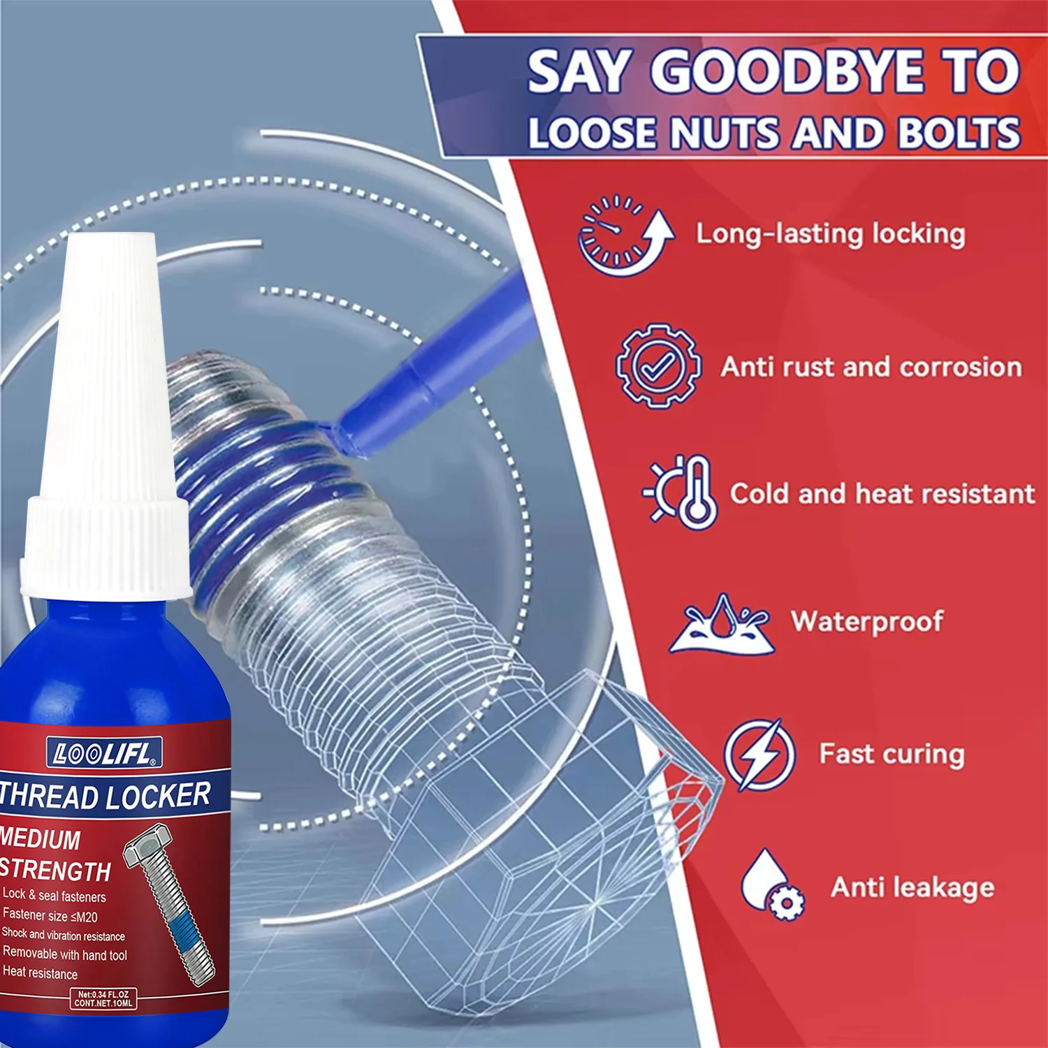 LOOLIFL 6PCS super glue Thread Locking Agent Anaerobic Sealant Screw Glues Anti Loose Fastening Quickly Cured Threadlocker 10ML