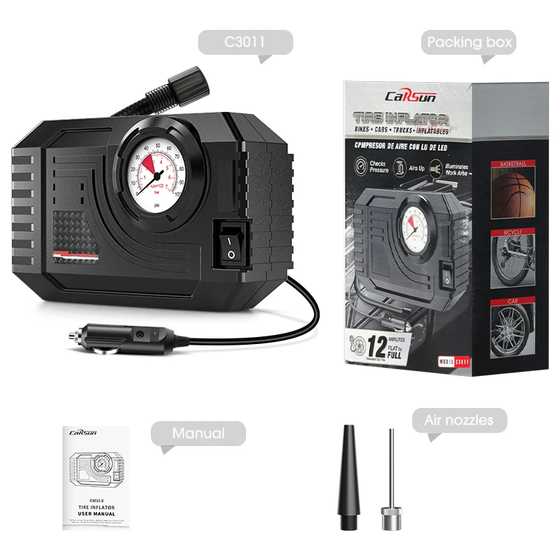 CARSUN Mini Air Pump Tire Inflator Portable Compressor Digital Wired Car Tyre Inflator For Bicycle Balls