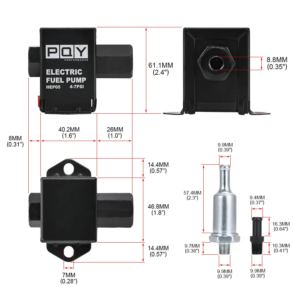 Universal 12V Electronic Inline Fuel Pump 4-7PSI High Pressure 90LPH Gas Petrol Diesel Compatible 40104 40106 40107 P502